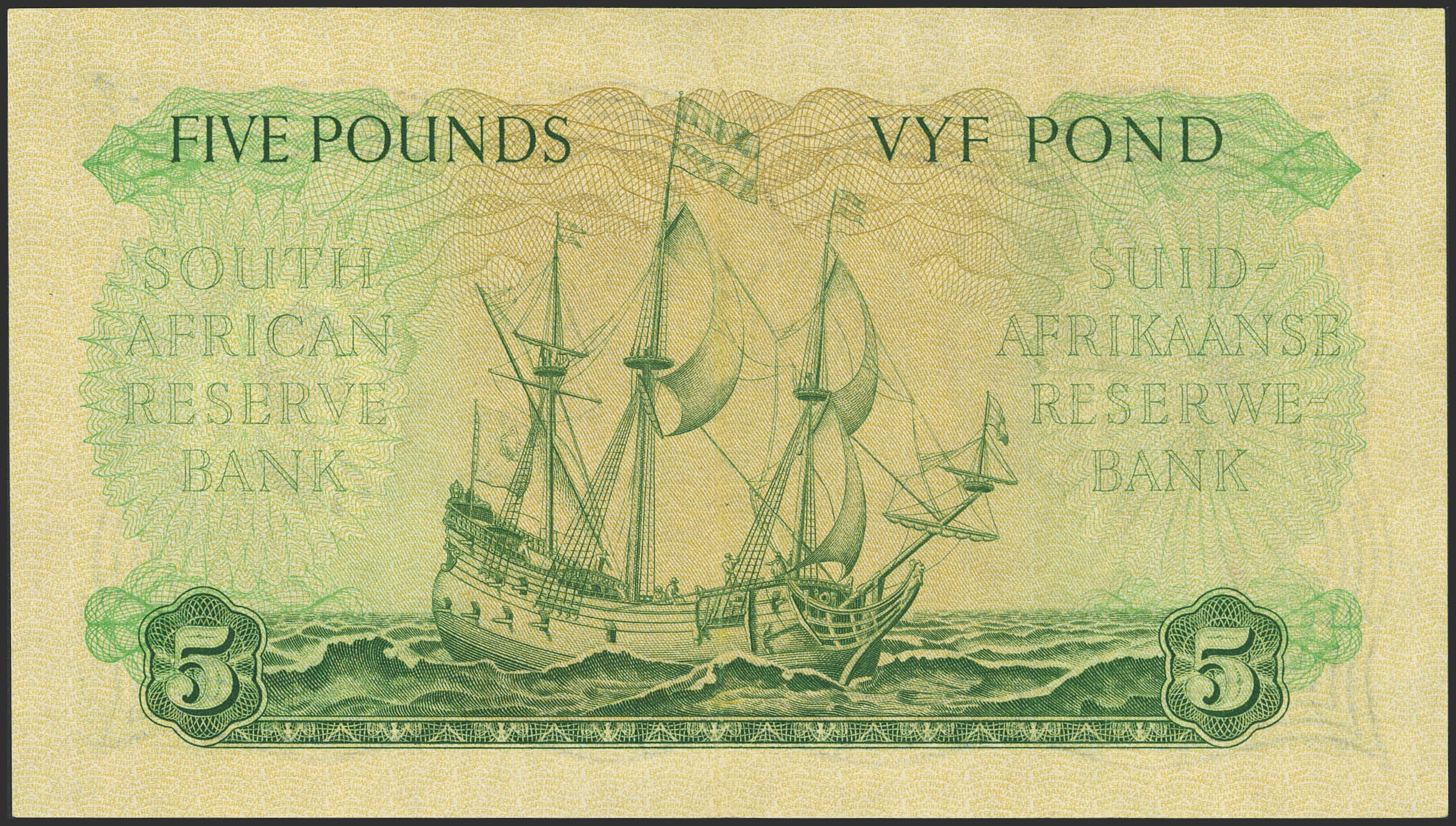 SOUTH AFRICA. 5 Pounds. 6 March 1958. Reserve Bank. (Pick: 97c). More than Extremely Fine.