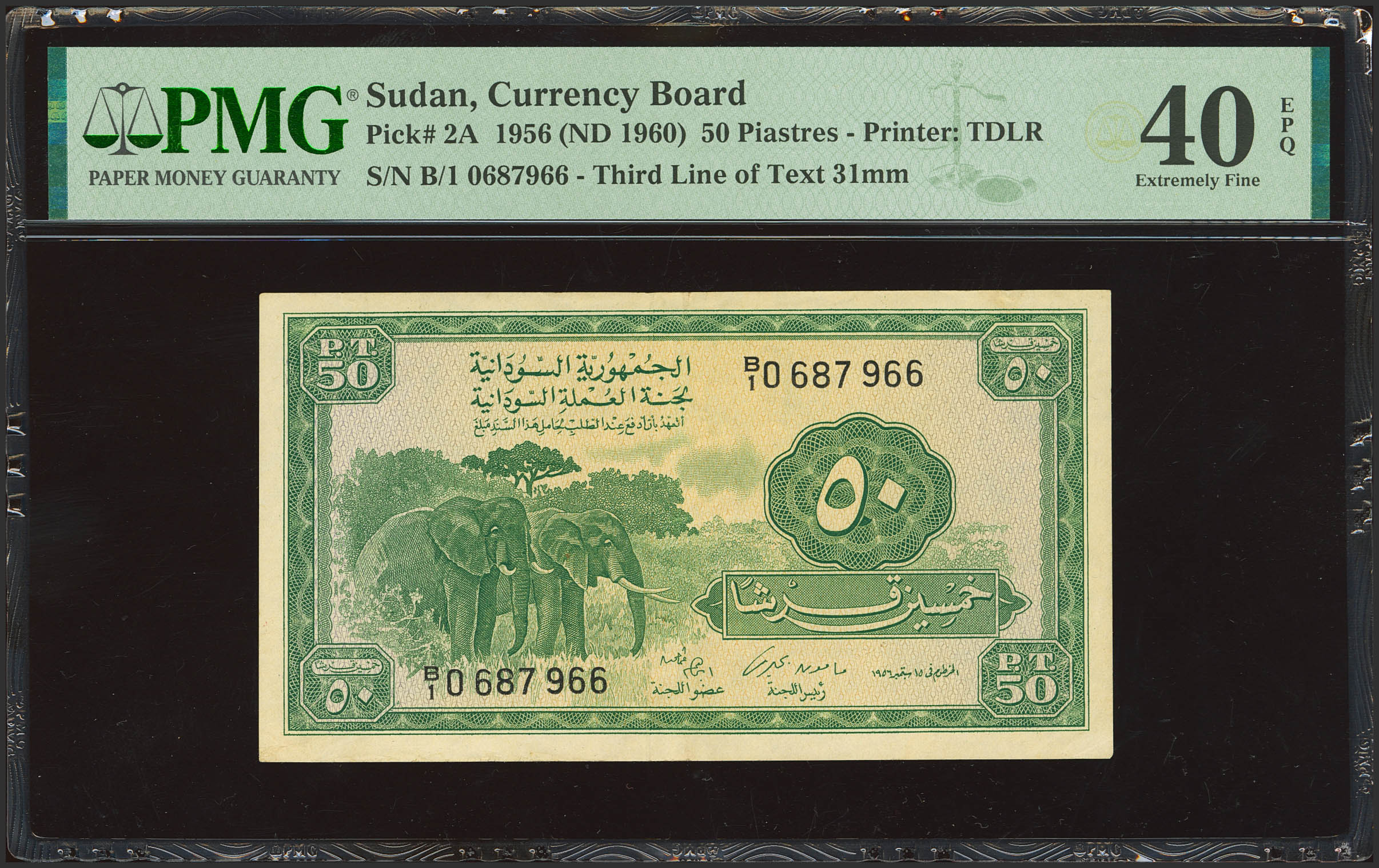 SUDAN. 50 Piastres. 1956. Currency Board. (Pick: 2A). PMG40EPQ.