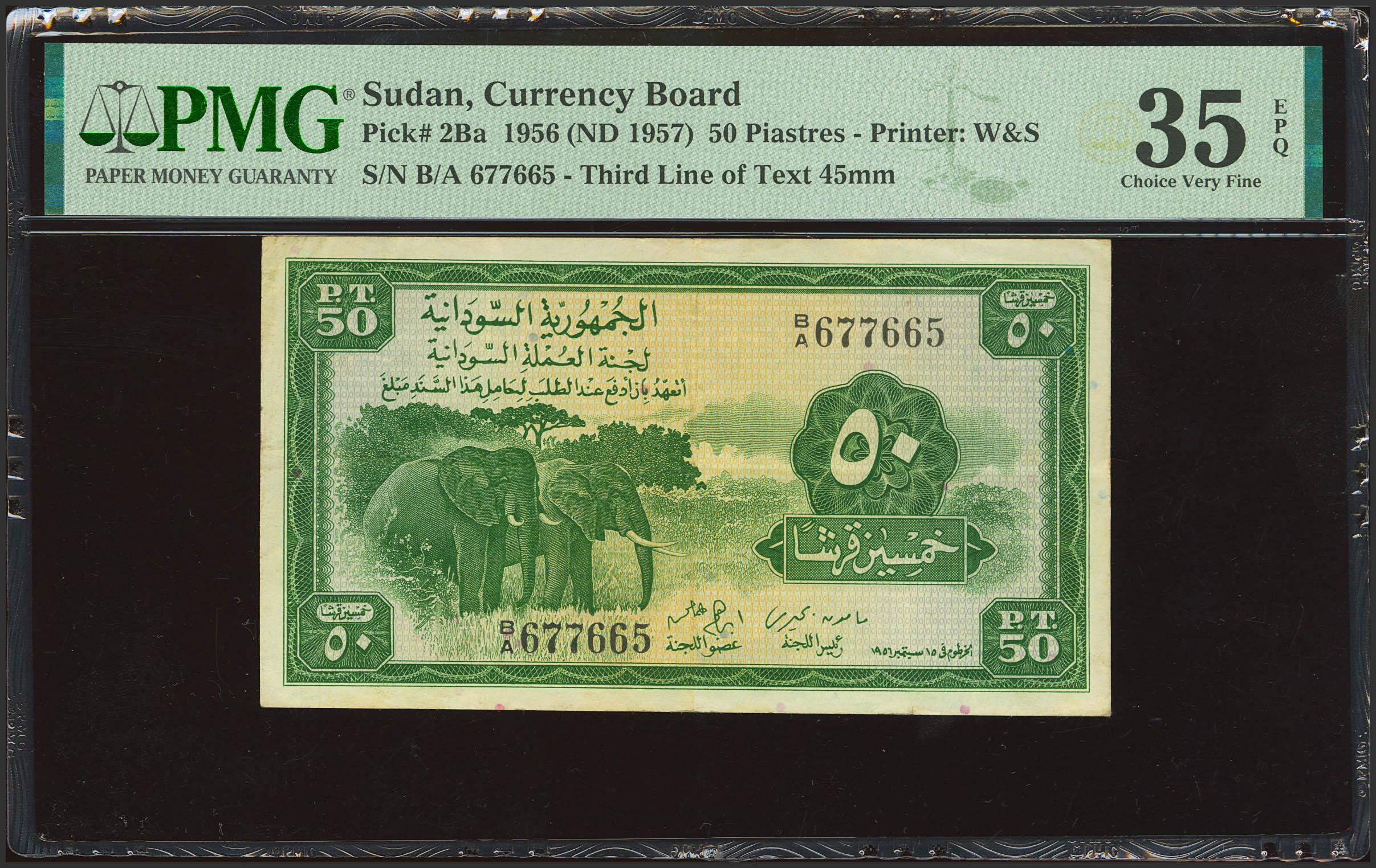 SUDAN. 50 Piastres. 1956. Currency Board. (Pick: 2Ba). PMG35EPQ.