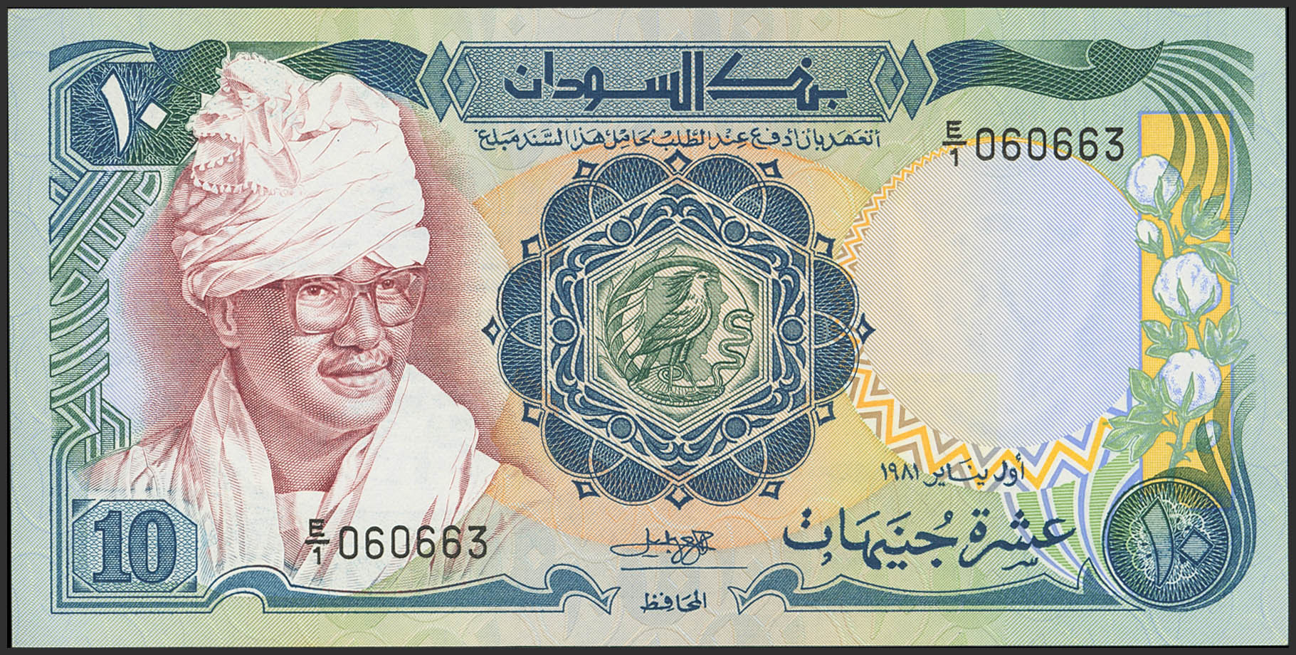 SUDAN. 10 Sudanese Pounds. 1981. Bank of Sudan. (Pick: 20a). Uncirculated.