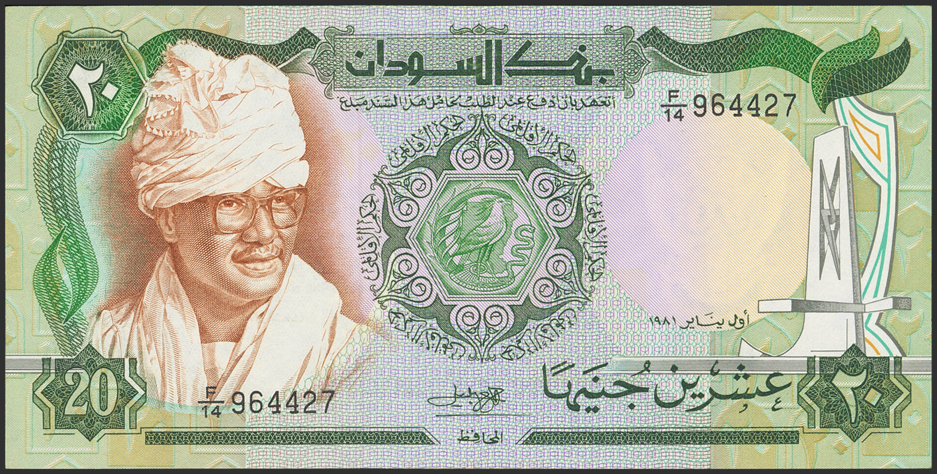 SUDAN. 20 Sudanese Pounds. 1981. Bank of Sudan. (Pick: 21). More than Extremely Fine.