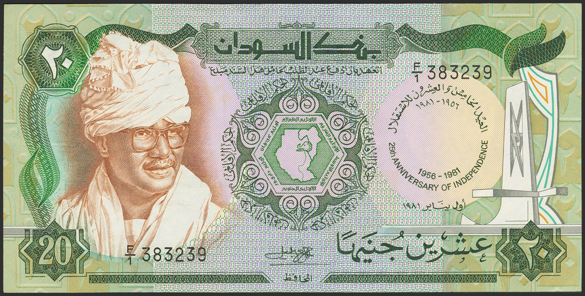 SUDAN. 20 Sudanese Pounds. 1981. Bank of Sudan. Commemorative Issue. 25th Anniversary of Independence. (Pick: 22). Almost Uncirculated.
