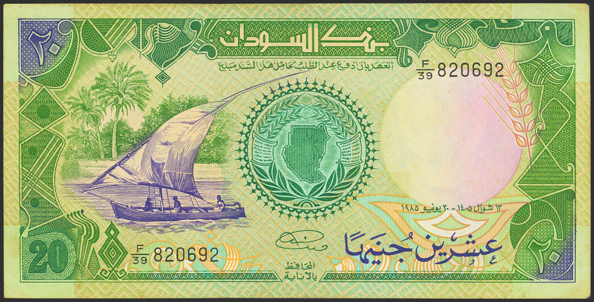 SUDAN. 20 Sudanese Pounds. 1985. Bank of Sudan. (Pick: 35). Almost Uncirculated.