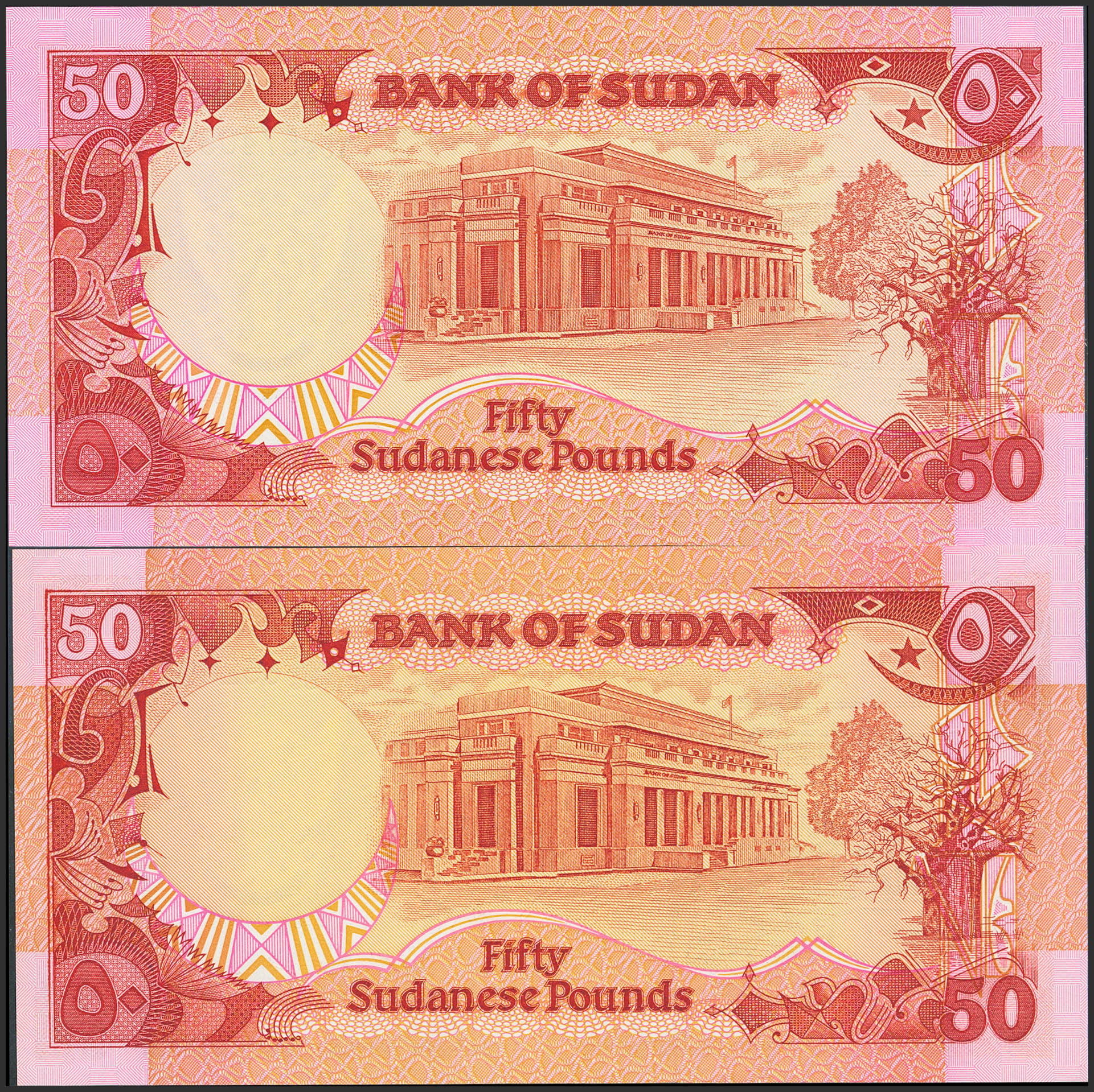 SUDAN. Lot of 2 notes of 50 Sudanese Pounds. 1987. Bank of Sudan. (Pick: 43a, 43b). Uncirculated.