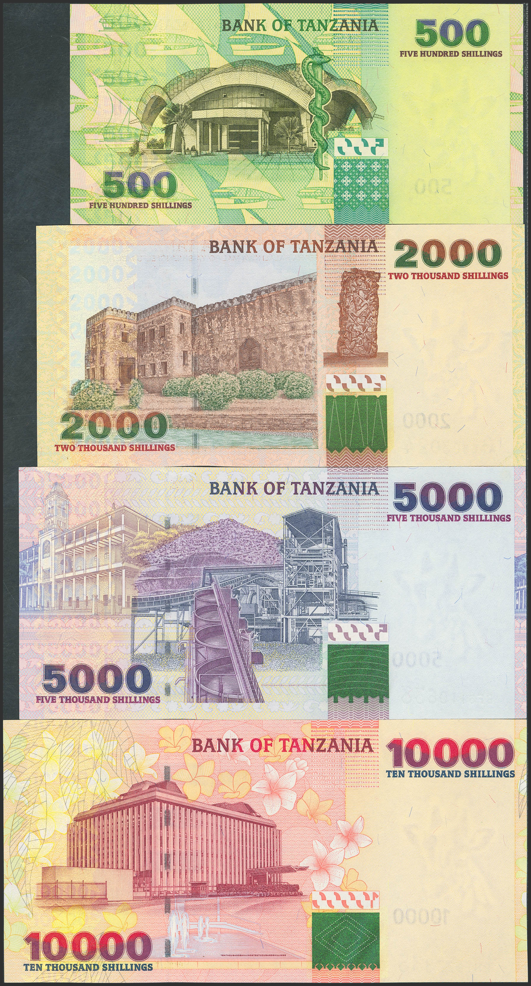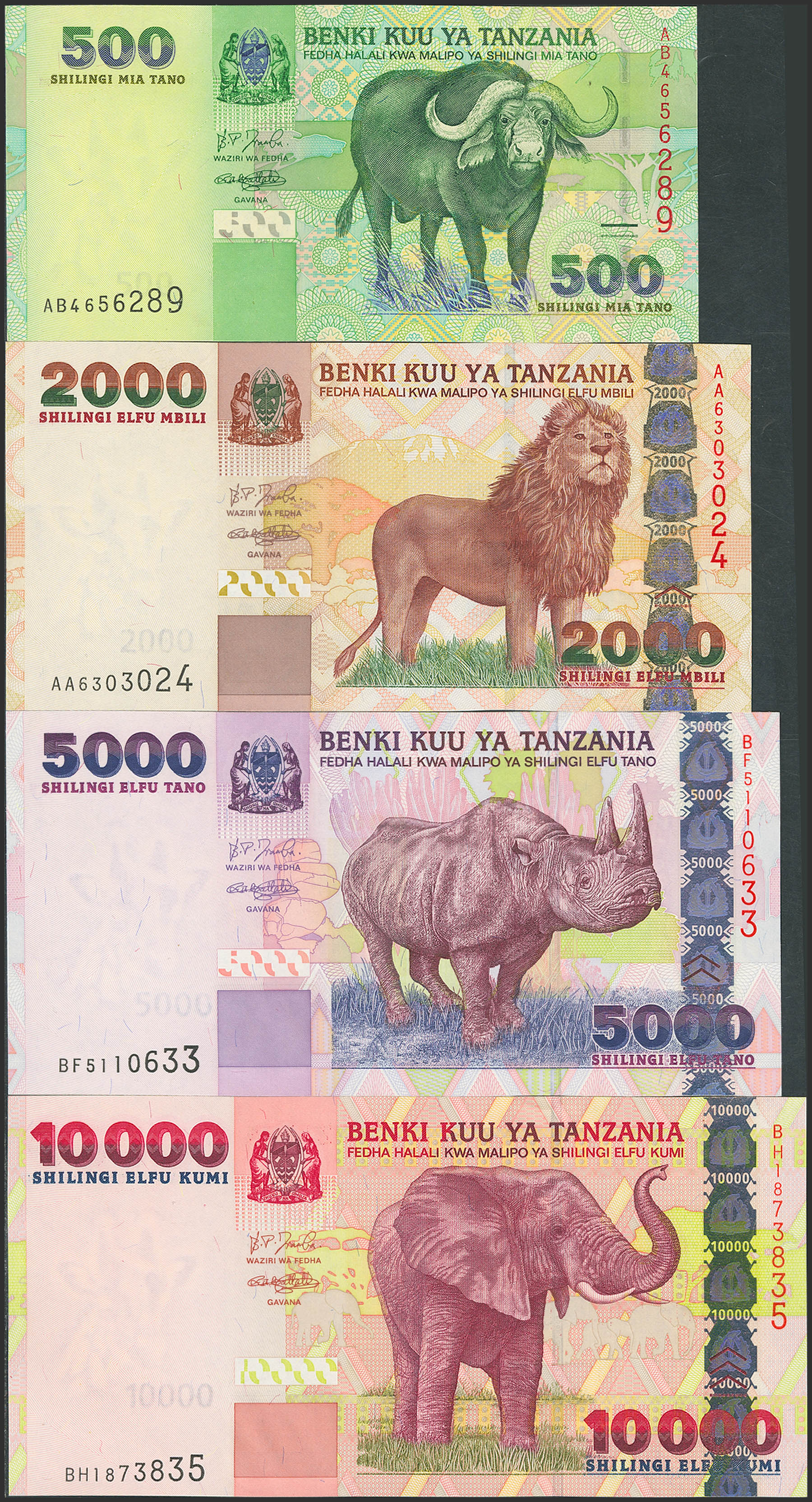TANZANIA. Lot of 4 notes of 500, 2000, 5000 and 10000 Shillings. (2003ca). Central Bank. (Pick: 35, 37a, 38, 39). Uncirculated.