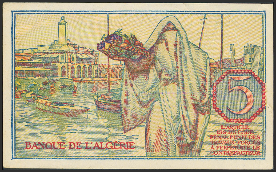 TUNISIA. 5 Francs. 2 October 1944. Banque de l'Algerie. Tunisie. (Pick: 16). Almost Uncirculated.