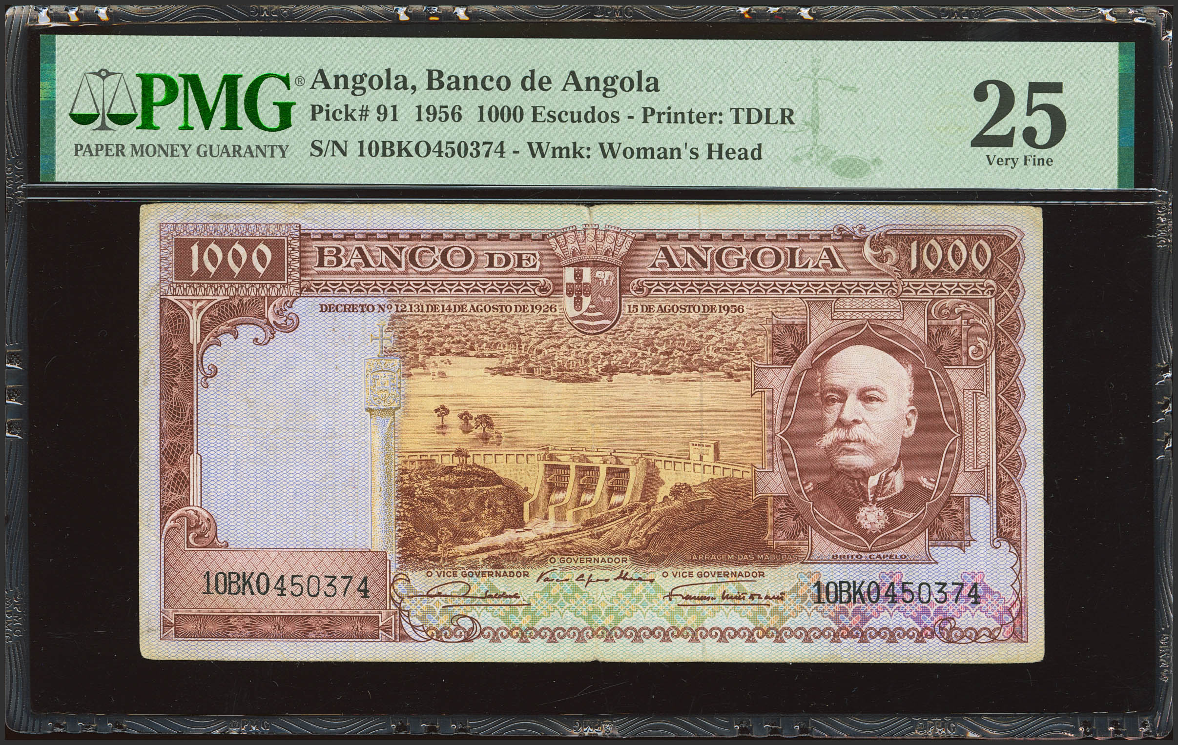 ANGOLA. 1000 Escudos. 15 August 1956. Banco de Angola. (Pick: 91). PMG25 (split).