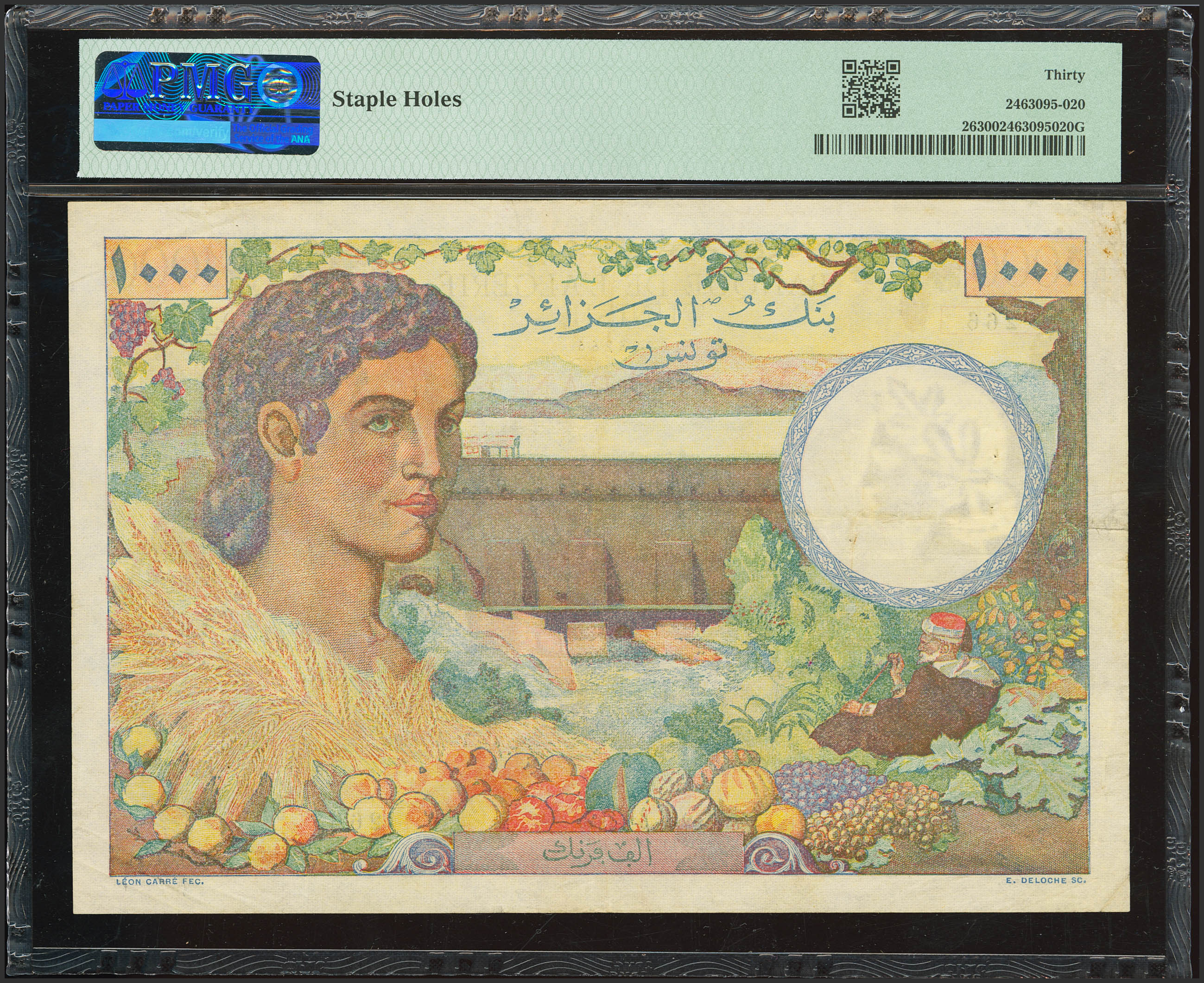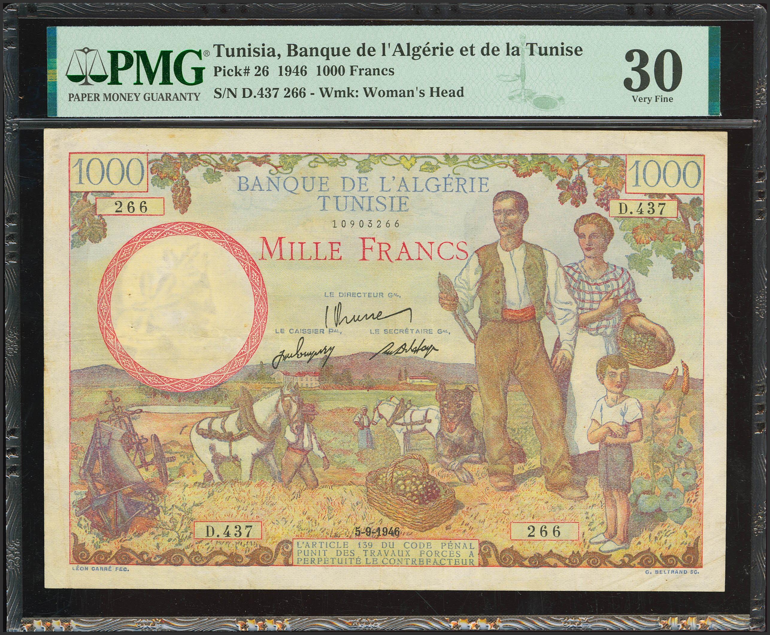 TUNISIA. 1000 Francs. 5 September 1946. Banque de l'Algerie et de la Tunisie. (Pick: 26). PMG30 (staple holes).