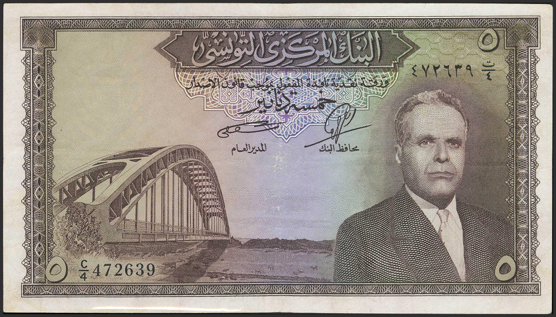 TUNISIA. 5 Dinars. (1958ca). Banque Centrale de Tunisie. (Pick: 59). Extremely Fine.