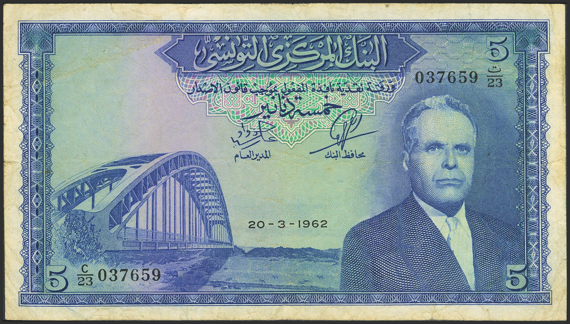 TUNISIA. 5 Dinars. 20 March 1962. Banque Centrale de Tunisie. (Pick: 61). Very Fine.