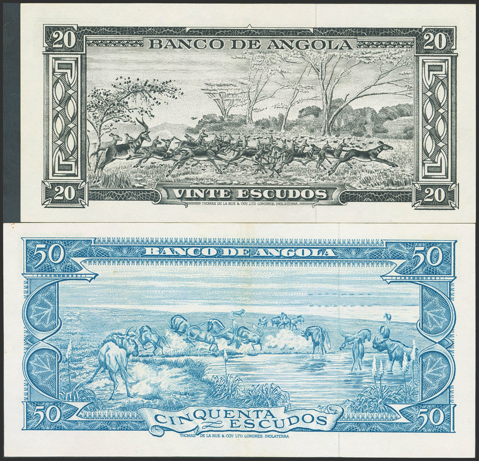 ANGOLA. Lot of 2 notes of 20 and 50 Escudos. 10 June 1962. Banco de Angola. (Pick: 92, 93). Almost Uncirculated.