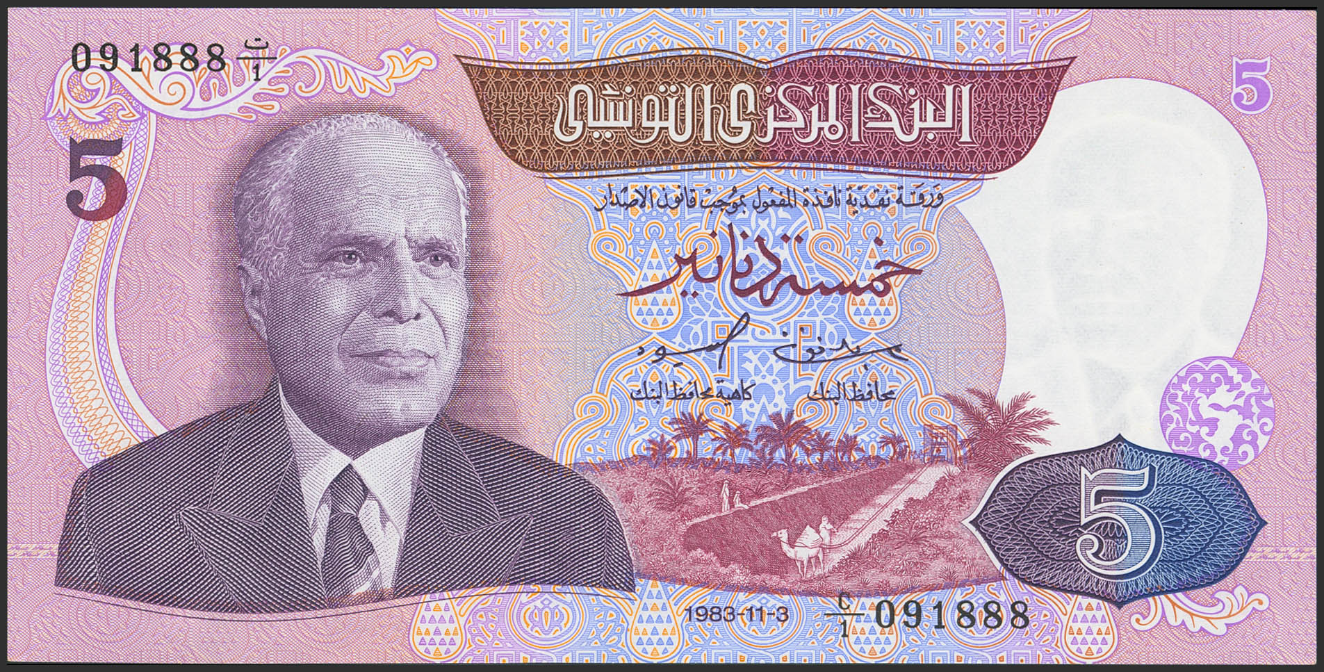 TUNISIA. 5 Dinars. 3 November 1983. Banque Centrale de Tunisie. (Pick: 79). Uncirculated.