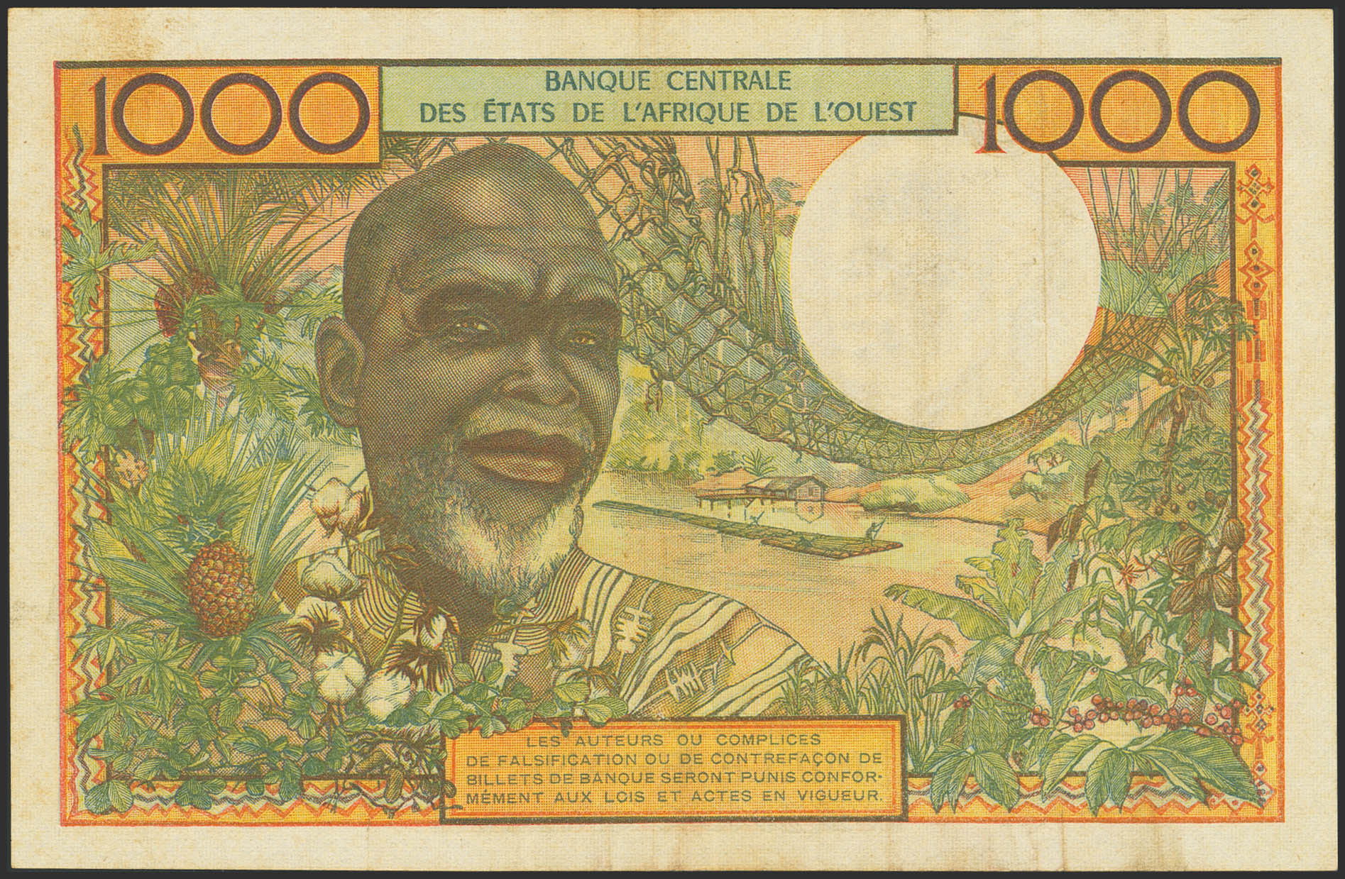 WEST AFRICAN STATES. 1000 Francs. (1960ca). Banque Centrale des Etats de l'Afrique de l'Ouest. Ivory Coast. Signatures of Babacar Ba and R. Julienne. (Pick: 103Ah). Extremely Fine.
