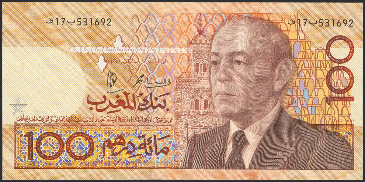 MOROCCO. 100 Dirhams. 1987. Bank Al-Maghrib. (Pick: 65d). Almost Uncirculated.