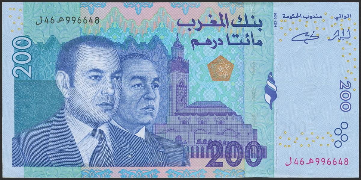 MOROCCO. 200 Dirhams. 2002. Bank Al-Maghrib. (Pick: 71). Less than Uncirculated.