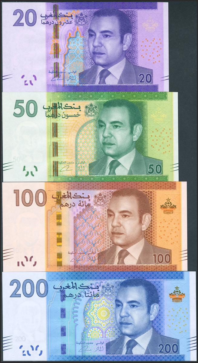 MOROCCO. Complete set of 4 notes from 20 to 200 Dirhams. 2012. Bank Al-Maghrib. (Pick: 74, 75, 76, 77). Uncirculated.