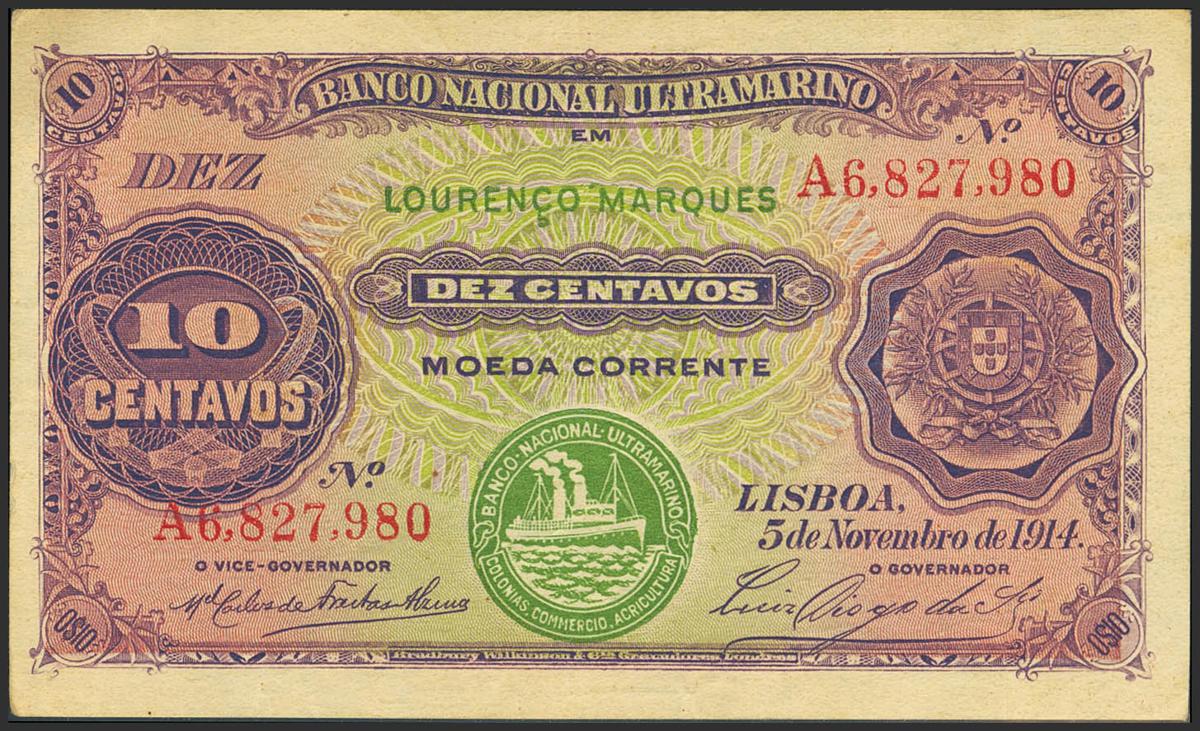 MOZAMBIQUE. 10 Centavos. 5 November 1914. Banco Nacional Ultramarino. (Pick: 59). More than Extremely Fine.