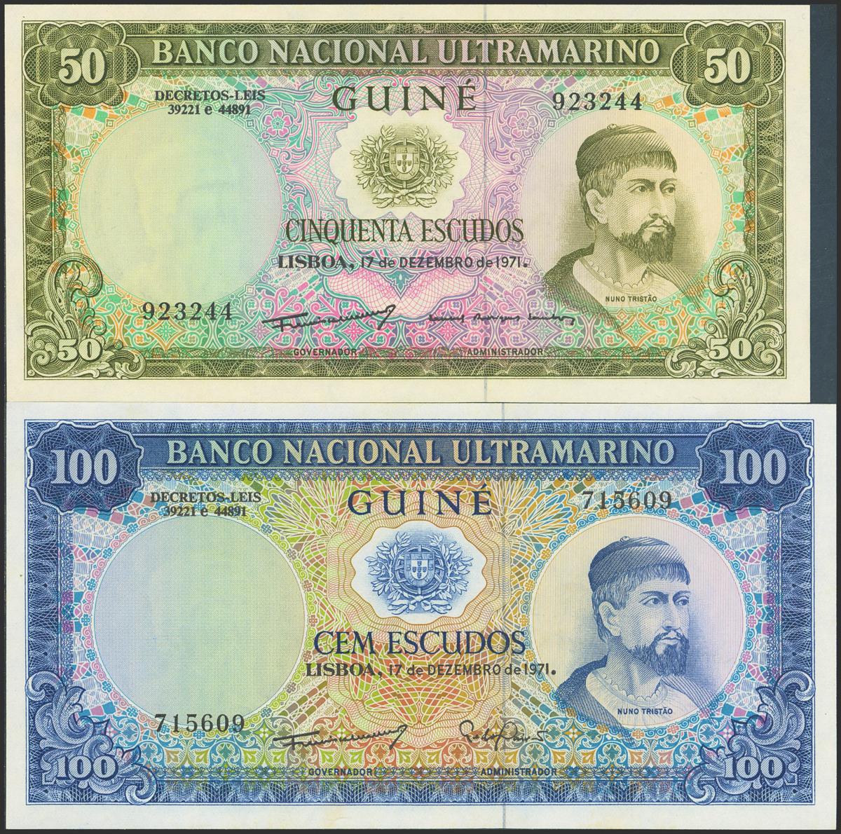 PORTUGUESE GUINEA. Lot of 2 notes of 50 and 100 Escudos. 17 December 1971. Banco Nacional Ultramarino. (Pick: 44a, 45a). Uncirculated.