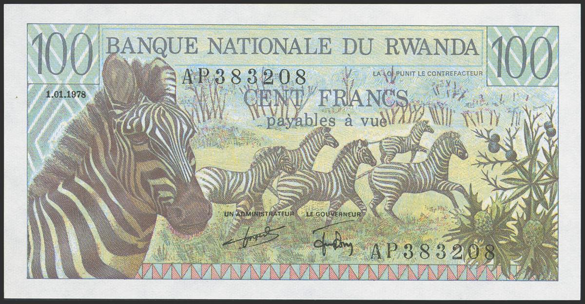 RWANDA. 100 Francs. 1 January 1978. Banque Nationale. (Pick: 12a). Uncirculated.
