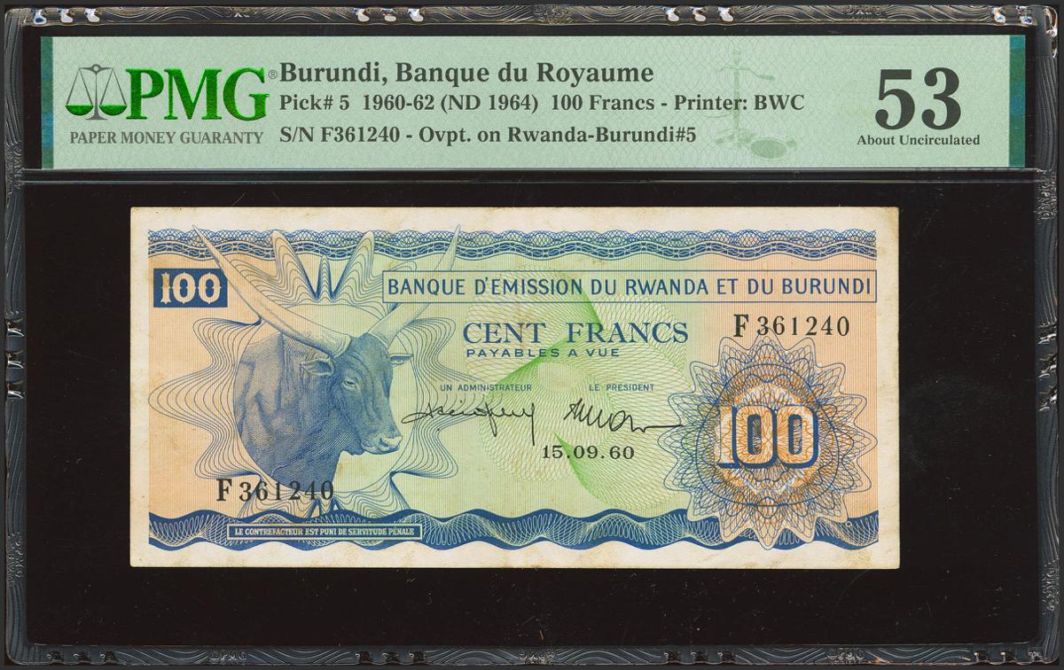 RWANDA-BURUNDI. 5 Francs. 15 May 1961. Banque d'Emission. (Pick: 1a). Extremely Fine.