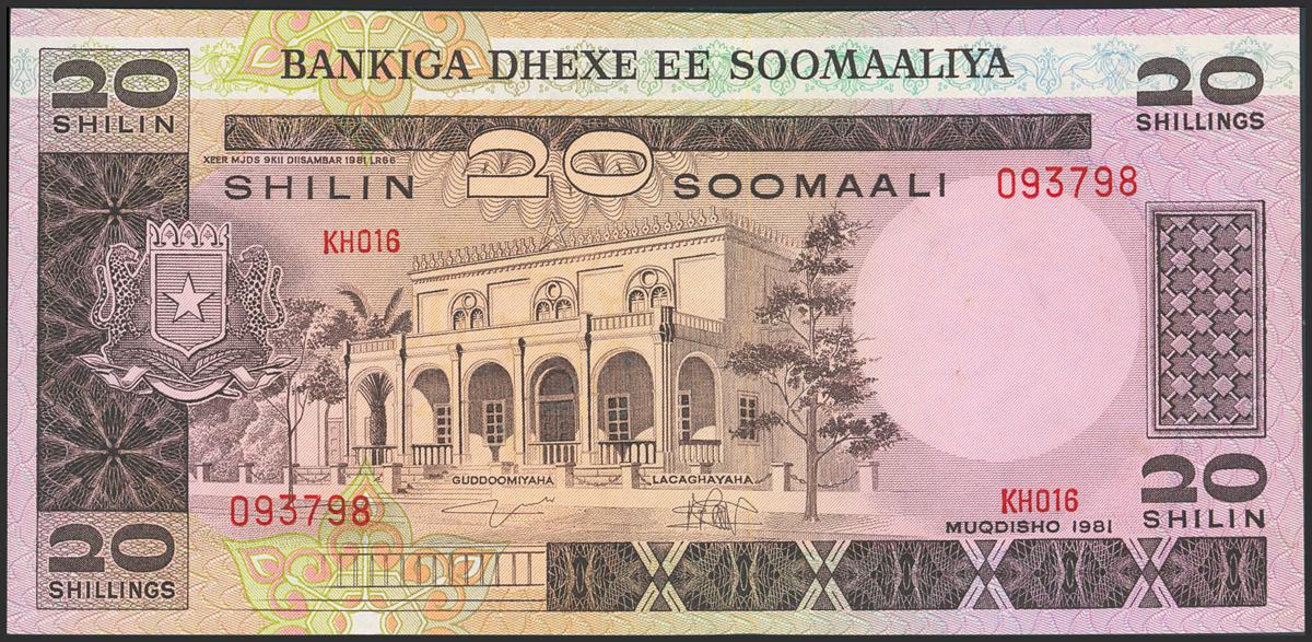 SOMALI. 20 Shillings. 1981. Central Bank. (Pick: 29). Almost Uncirculated.