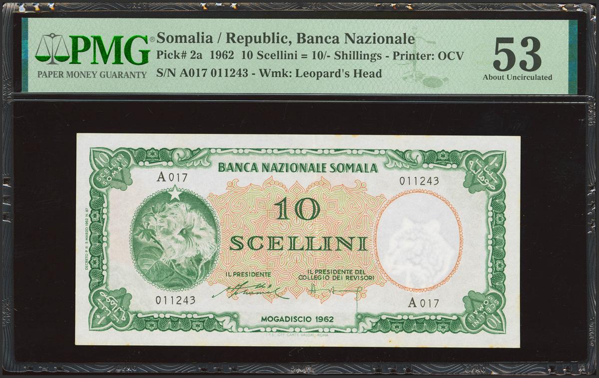 SOMALIA. 10 Shillings. 1962. Banca Nazionale. (Pick: 2a). PMG53.