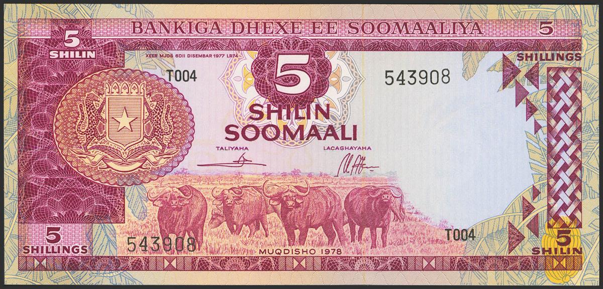 SOMALIA. 5 Shillings. 1978. Central Bank. (Pick: 21). Less than Uncirculated.
