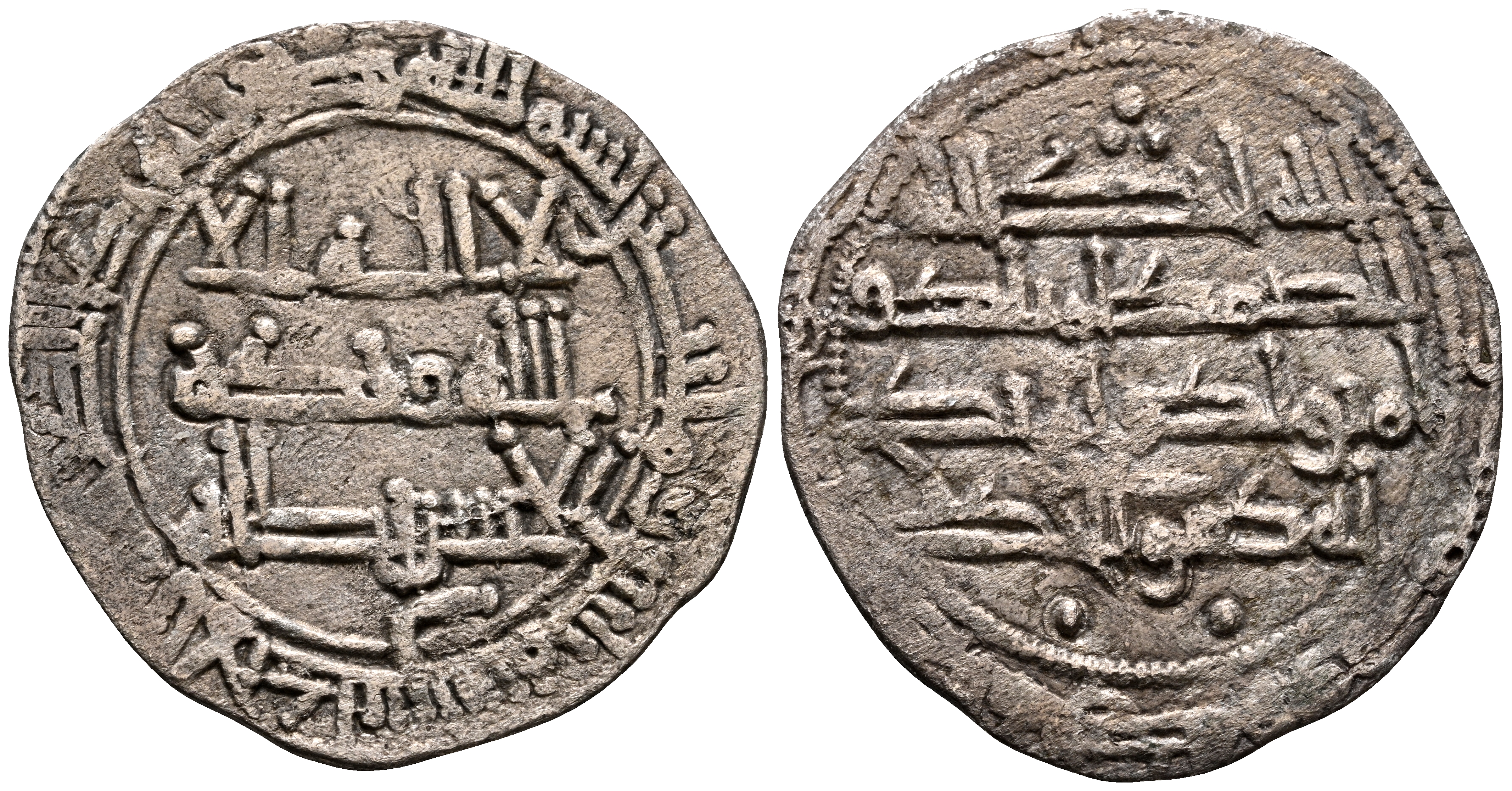 EMIRATO INDEPENDIENTE DE CORDOBA, Abd al-Rahman II. Dirham. (Ar. 1,61g/23mm). 230H. al-Ándalus / الاندلس. (Vives 195; Frochoso no cita esta combinación de adornos). MBC. Porosidad. Incluye etiqueta con anotaciones de época del antiguo coleccionista.