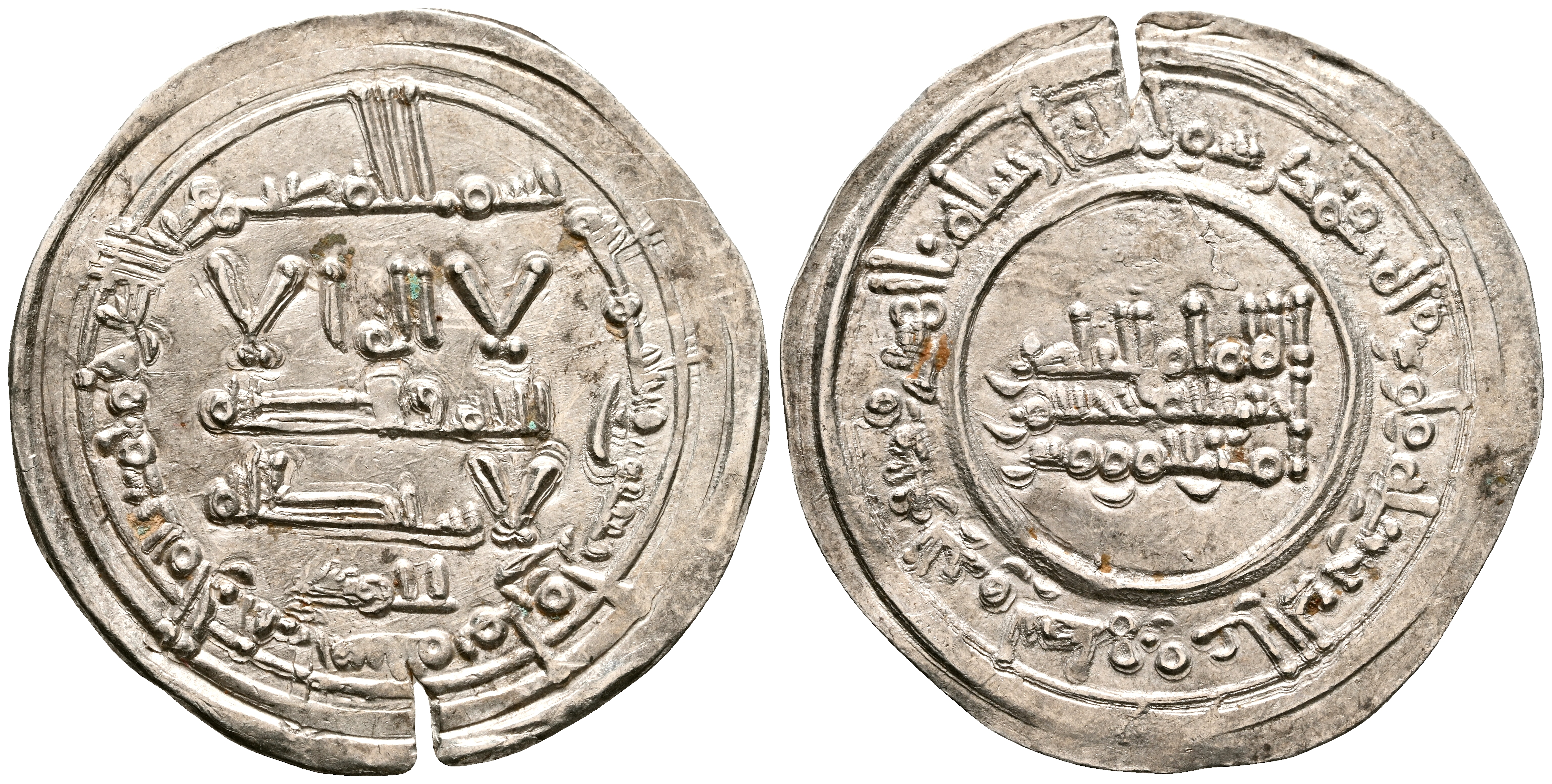 CALIFATO DE CORDOBA, 'Abd al-Rahman III. Dirham. (Ar. 1,82g/24mm). 348H. Madinat al-Zahra / مدينة الزهرا. (Vives 431; Frochoso 348.7). Citando a Ahmad / احمد en IA. EBC-. Pequeña grieta de acuñación. Excelente ejemplar.