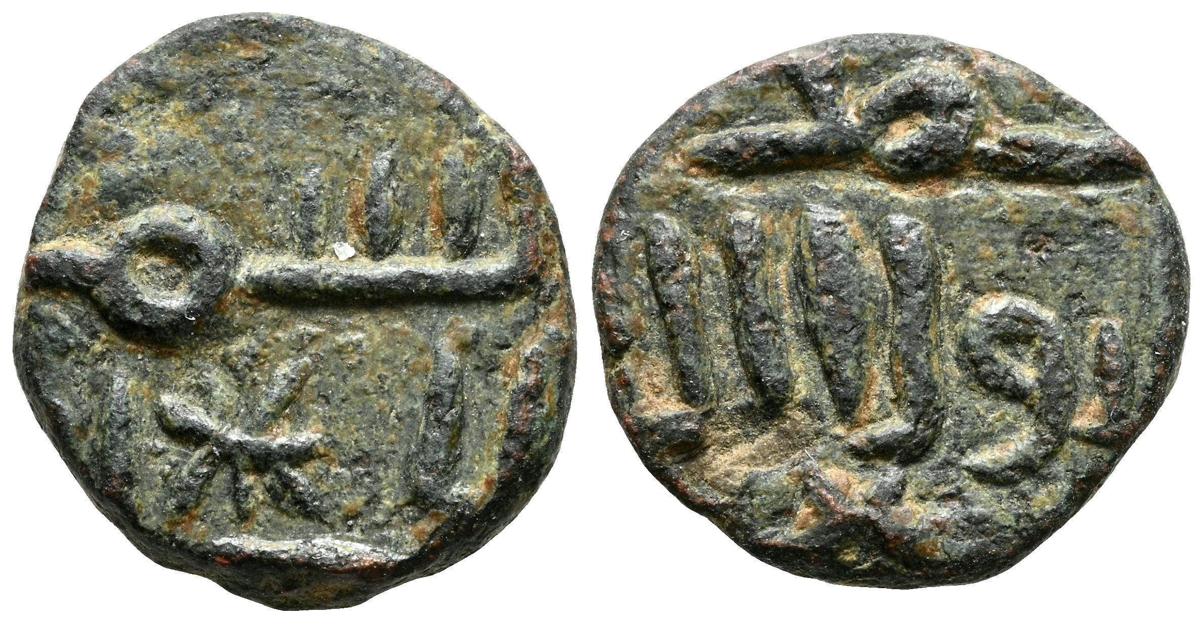 EMIRATO DEPENDIENTE DE CORDOBA, PERIODO DE GOBERNADORES. Anónimo. Felús. (Ae. 1,49g/12mm). S/D. (Frochoso IX-a). Anv: الله / بسم (En el nombre de Dios) con estrella entre líneas. Rev: سول الله / محمدر (Muhammad enviado de Dios). MBC+.