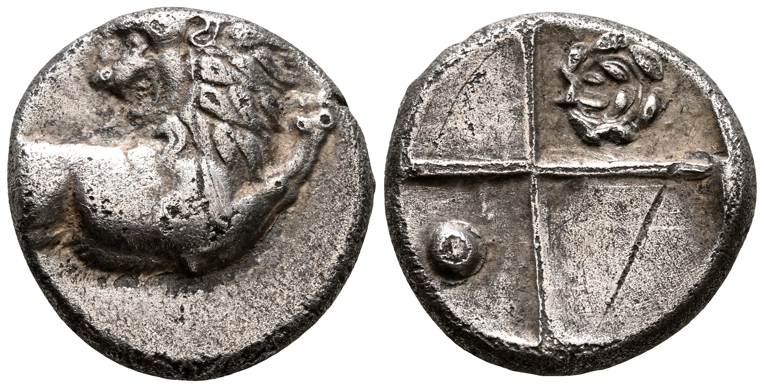 TRACIA, Chersonesos. Hemidracma. (Ar. 2,32g/13mm). 350-300 a.C. (HGC 3.2, 1437). Anv: Parte delantera de león a derecha mirando a izquierda. Rev: Cuatripartito incuso con estrella de ocho puntos y globo. MBC.
