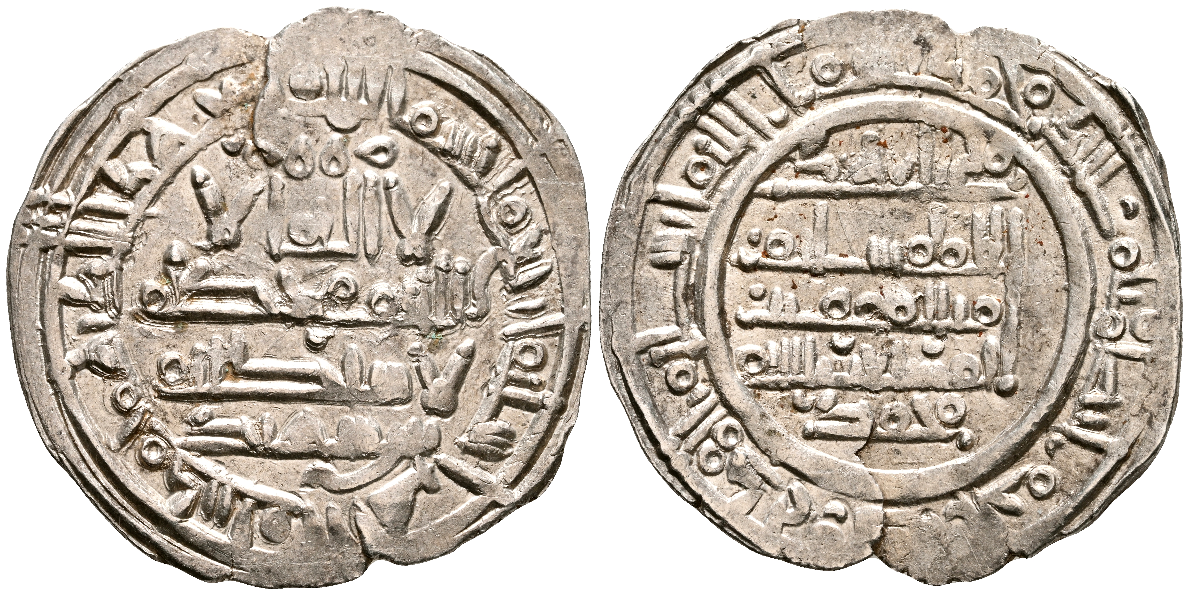 CALIFATO DE CORDOBA, Sulayman. Dirham. (Ar. 2,69g/25mm). 400H. Madinat al-Zahra / مدينة الزهرا. (Vives 696; Frochoso no cita esta combinación de adornos). Citando a Ibn Suhaid / ابن شهيد en IA y al príncipe herededo Muhammad: محمد / ولى العهد en IIA. MBC+. Grieta de acuñación.