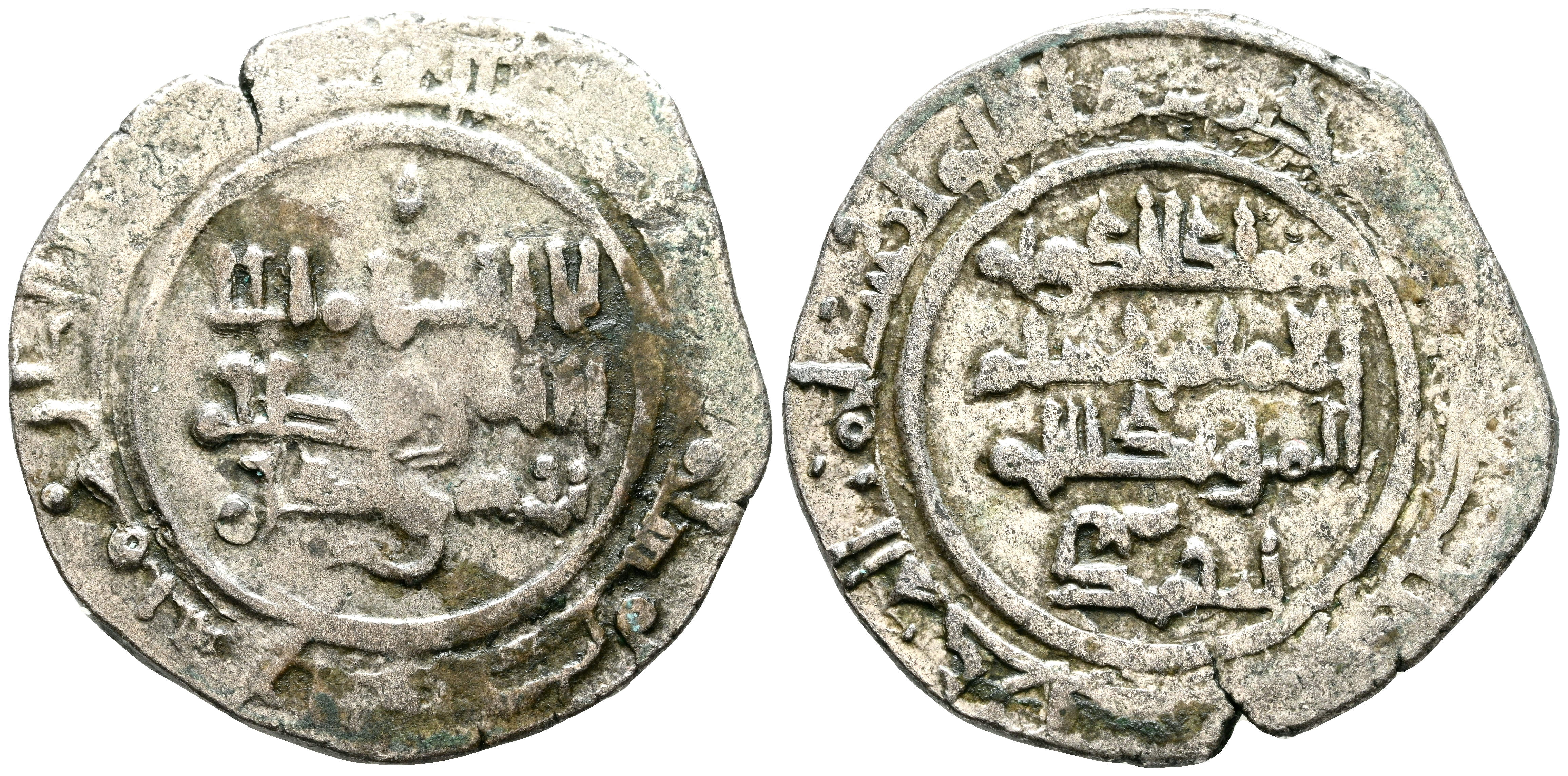 TAIFAS DEL CALIFATO, ZARAGOZA (Banu Hud). Imad al-Dawla Ahmad I Ibn Sulayman, al-Muqtadir. Dirham. (Ve. 3,93g/24mm). 460H. Saraqusta (Zaragoza) / سرقسطة. (Vives 1195; Prieto 267k). Citando عماد الدولة ('Imād al-Dawla) / احمد (Ahmad) en IIA. MBC-. Inc luye etiqueta con anotaciones y dibujos de época del antiguo coleccionista. Raro ejemplar.