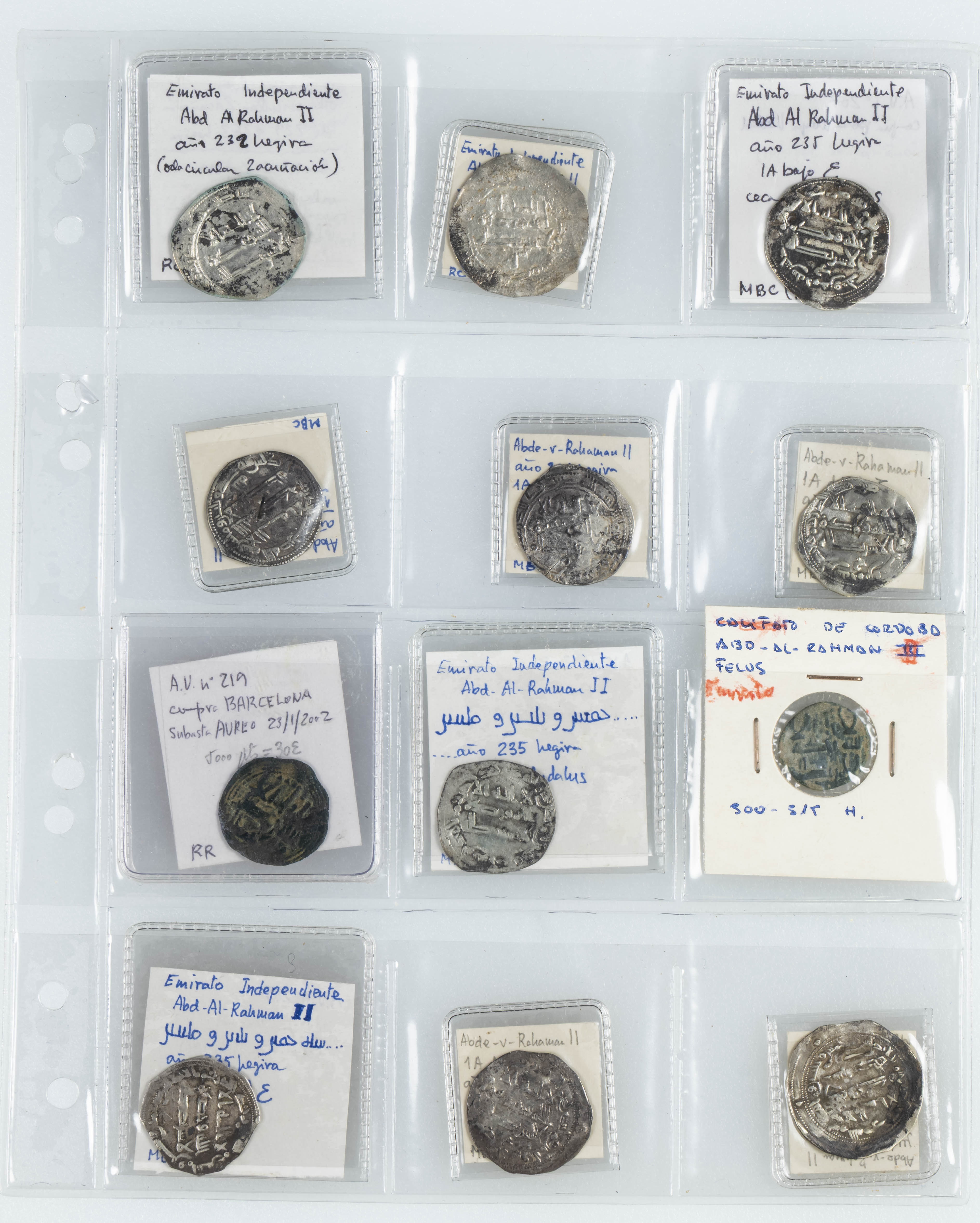 Interesantísimo resto de colección / conjunto compuesto por 60 monedas comprendidas entre el Emirato Independiente de Córdoba y el periodo de Taifas. A destacar una gran variedad de fecha y tipos. Diferentes metales, módulos y estados de conservación . A EXAMINAR.