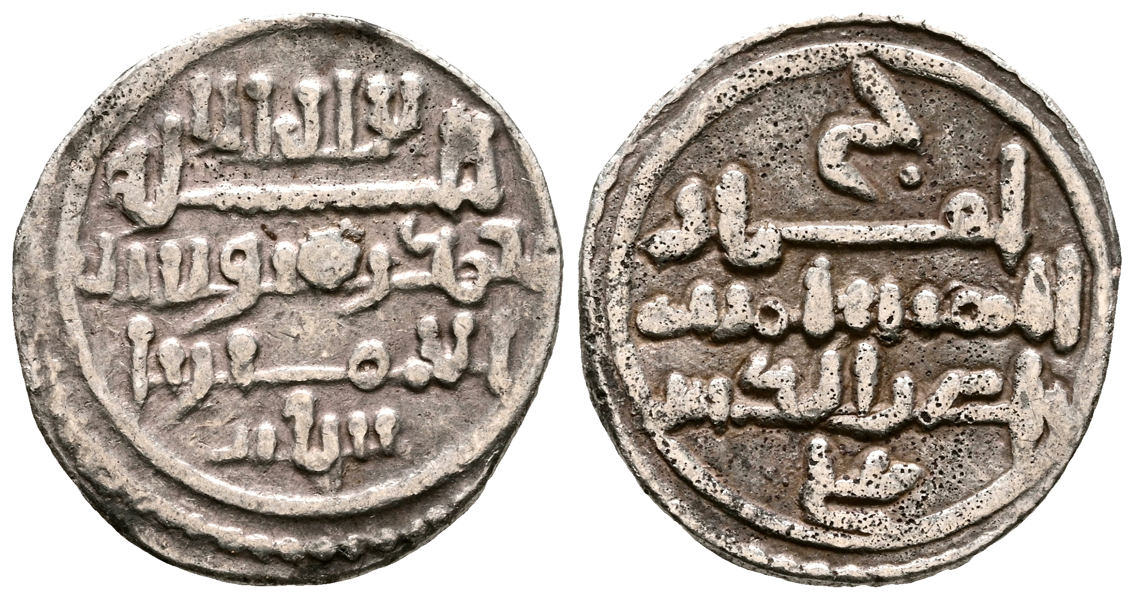 ALMORAVIDES, Ali ibn Yusuf y el emir Tashfin (533-537H). Quirate. (Ar. 0,95g/12mm). (Vives 1827; Hazard 1004; Benito Cj7). Anv: 'Shahada' en tres líneas, debajo mención al heredero en dos: تاشفين/الامير. Rev: Presenta a Ali con títulos de Amir al-Mu slimin y Nasir al-Din. MBC+.