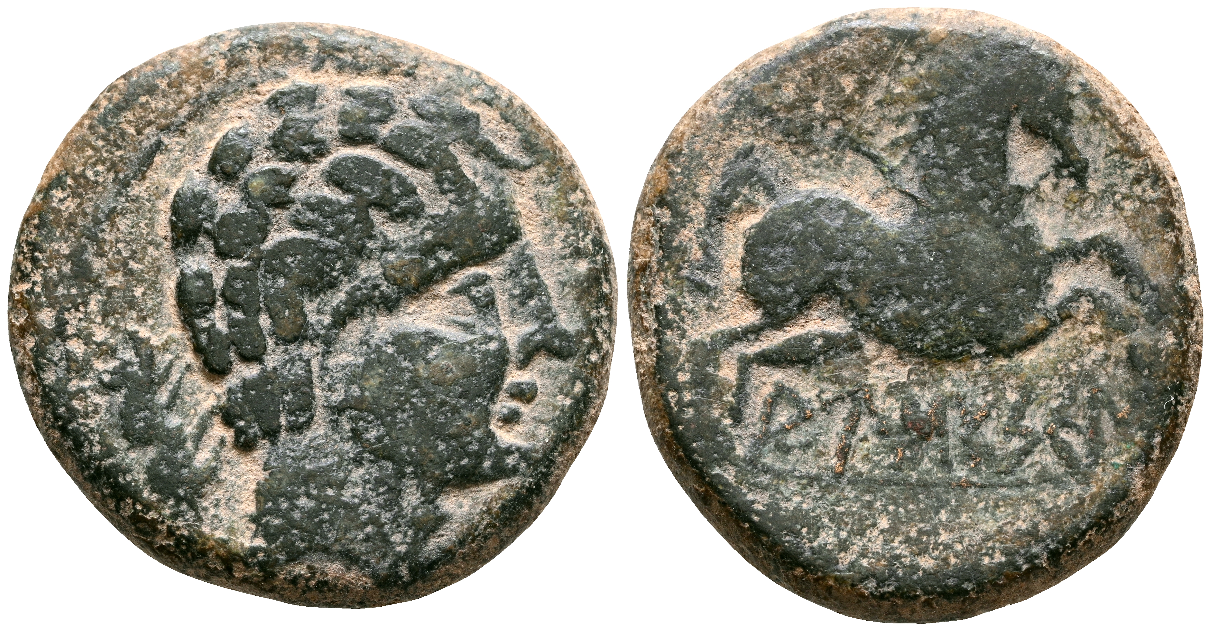 AUSESCEN (Vic, Barcelona). Semis. (Ae. 6,03g/21mm). 120-20 a.C. (FAB-166). Anv: Cabeza masculina a derecha, detrás jabalí. Rev: Caballo a derecha, debajo leyenda ibérica: AUSESCeN. MBC. Escaso ejemplar.