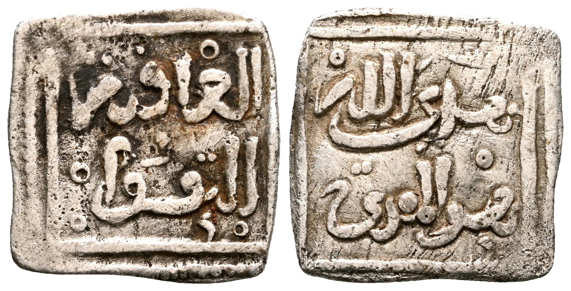 ALMOHADES, Anónimo. 1/4 Dirham. (Ar. 0,36g/10mm). (Vives 2209, como Nazarí; Medina 203a; Hohertz 636). Anv: هدى الله / هو الهدى. (La guía de Allah / es la guía). Rev: العا قبة / التقوا. (La recompensa del más allá / pertenece a los devotos). MBC.