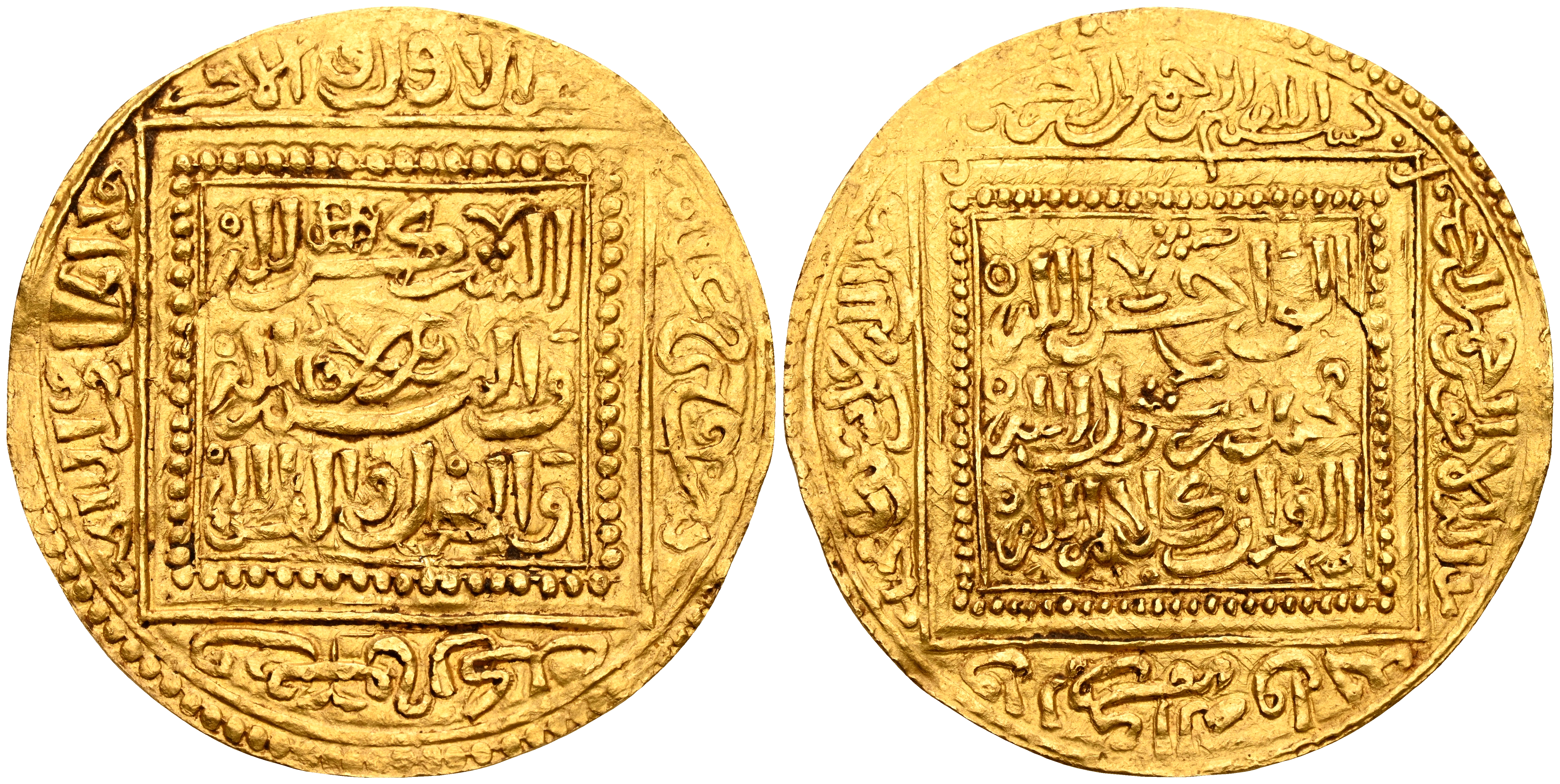 MERINÍES, Abu Yahya Abu Bark. Dinar. (Au. 4,66g/31mm). 642-656H. Sijilmasa (Sejilmesa) / سجلماسة. (Hazard 690; Álbum 520 ). MBC+. Bello ejemplar.