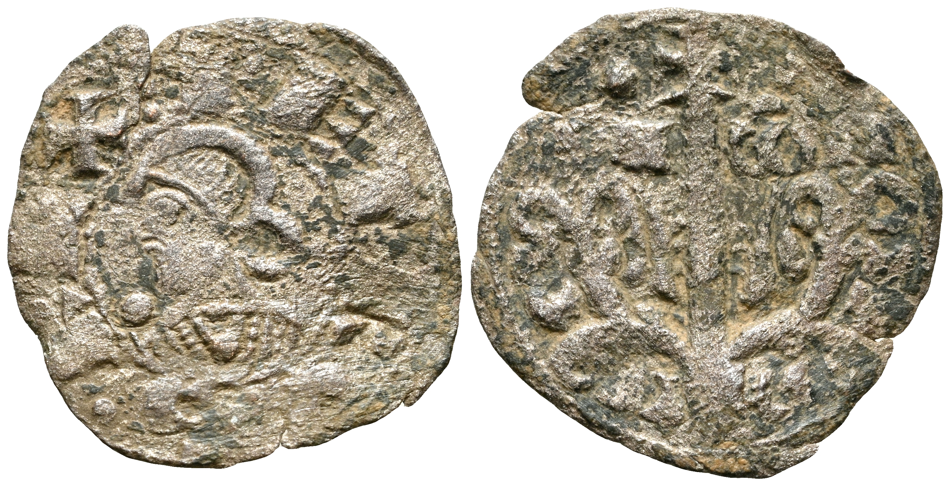 PEDRO EL DE HUESCA (1094-1104). Dinero. (Ve. 0,59g/17mm). Jaca (Huesca). (Cru. V.S. 213.2). Anv: Busto de Pedro a izquierda, alrededor leyenda: PETRVS REX. Rev: Árbol superado de cruz flanqueada con puntos, a los lados leyenda: ARA-GON. MBC-. Muy escaso ejemplar.