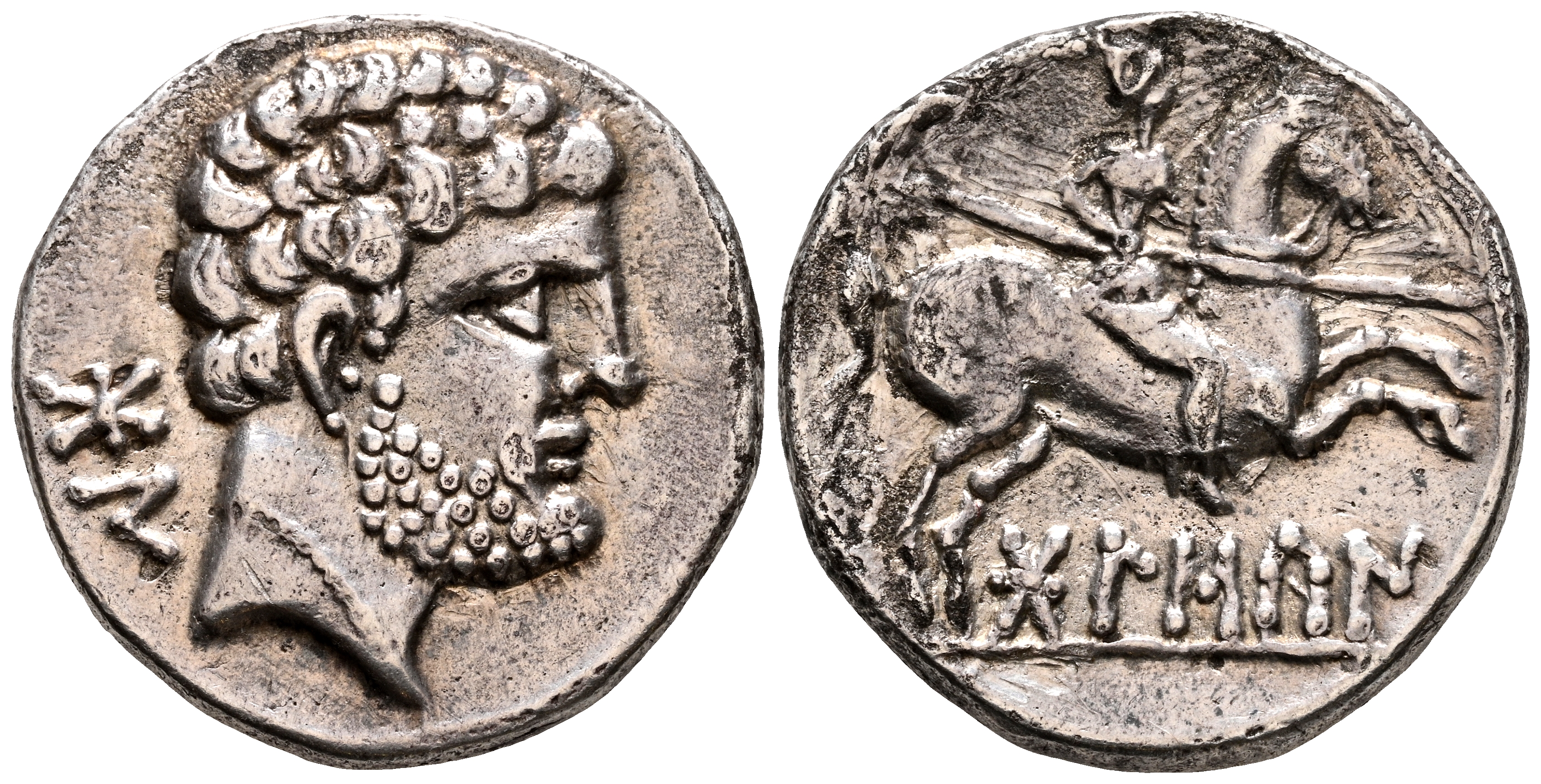 BOLSCAN (Huesca). Denario. (Ar. 3,89g/17mm). 180-20 d.C. (FAB-1911). Anv: Cabeza masculina barbada a derecha, detrás letras ibéricas: BoN. Rev: Jinete con lanza a derecha, bajo leyenda ibérica: BoLSCaN. MBC+. Oxidaciones limpiadas en reverso.