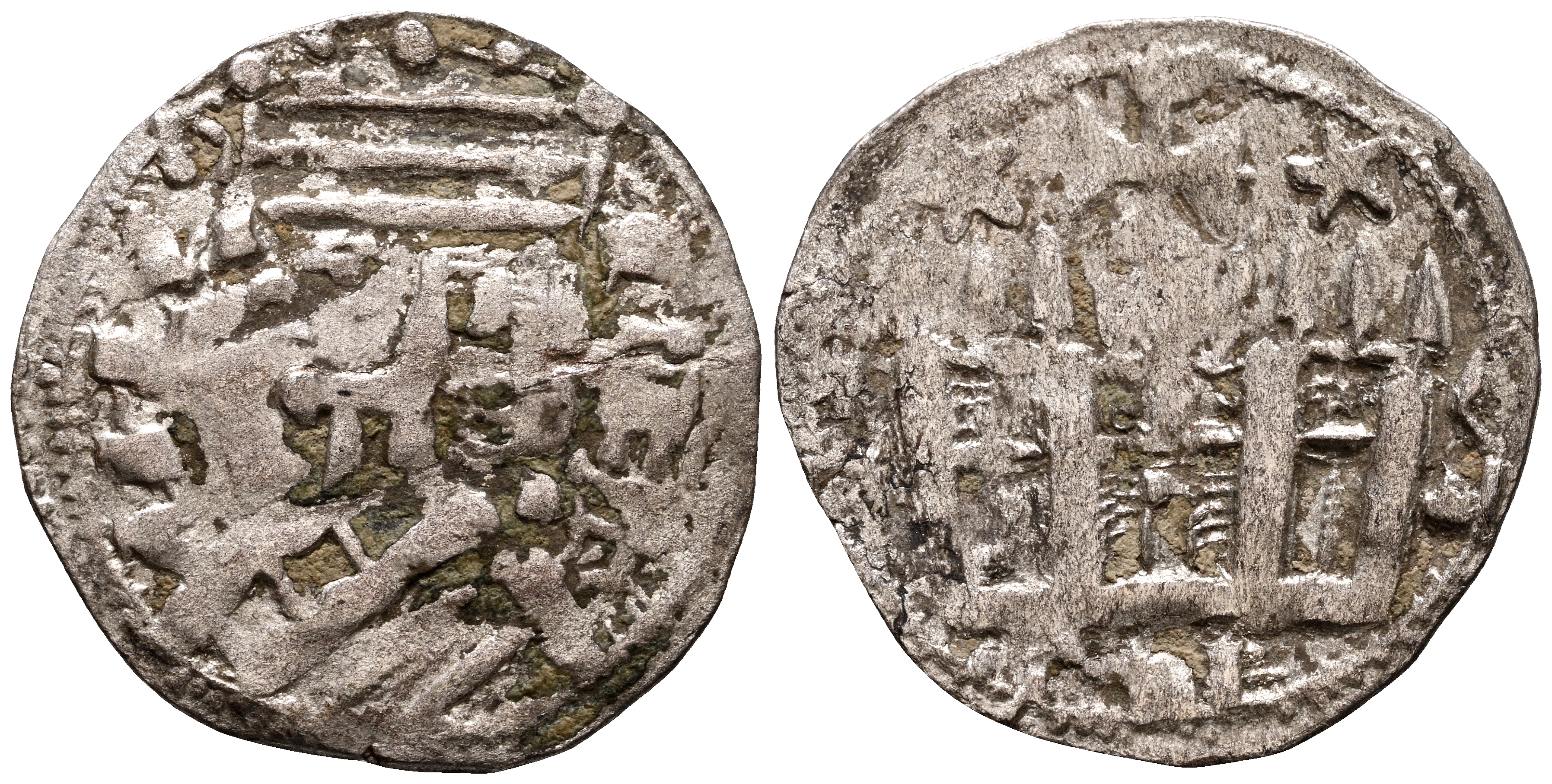 ALFONSO VIII (1158-1214). Dinero. (Ve. 1,06g/18mm). Posiblemente Toledo. (MMM A8:38.27; FAB-205). Anv: Busto coronado de Alfonso VIII a izquierda, detrás punto, alrededor leyenda: ANFVS REX. Rev: Castillo con cruz central flanqueda por estrellas, alrededor leyenda: CASTELE. MBC-.