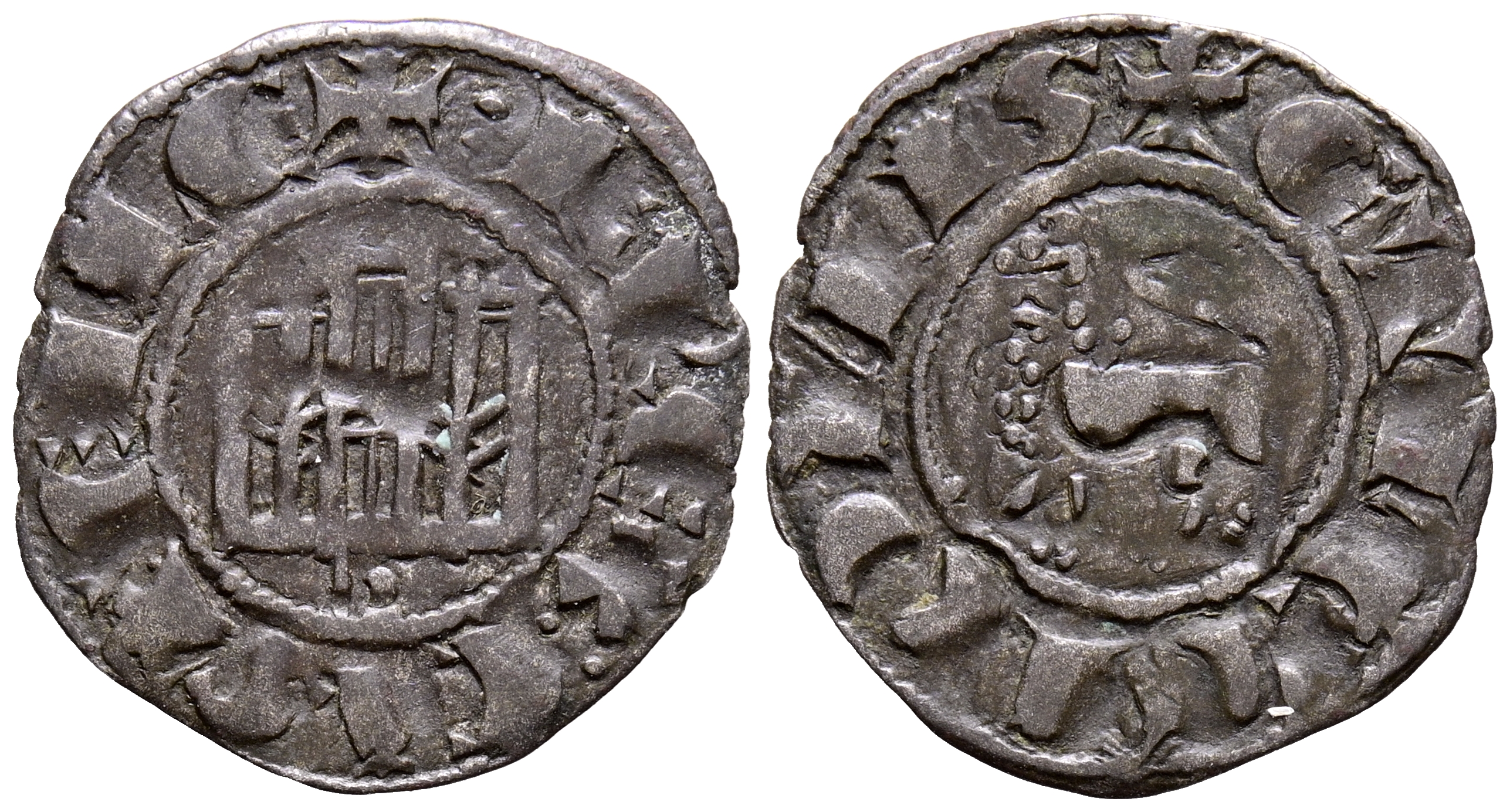 FERNANDO IV (1295-1312). Dinero. (Ve. 0,80g/19mm). Burgos. (Imperatrix F4:1.2; FAB-319, como Pepión). Anv: Castillo, debajo: B, todo dentro de gráfila circular, alrededor leyenda: F REX CASTELLE. Rev: León rampante a izquierda dentro de gráfila circular, alrededor leyenda: ET LEGIONIS. MBC.