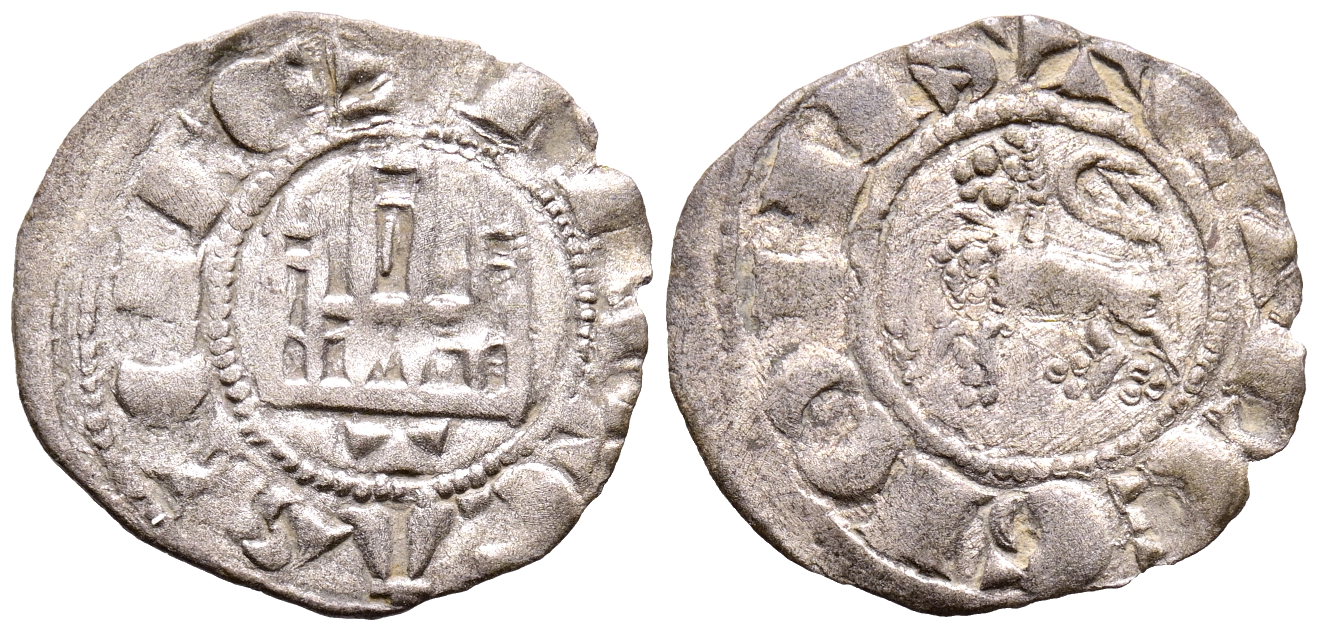 FERNANDO IV (1295-1312). Dinero. (Ve. 0,76g/18mm). Toledo. (Imperatrix F4:2.33; FAB-326, como pepión). Anv: Castillo, debajo T, todo dentro de gráfila circular, alrededor leyenda: F REX CASTELLE. Rev: León rampante a izquierda dentro de gráfila circular, alrededor leyenda: ET LEGIONIS. MBC.