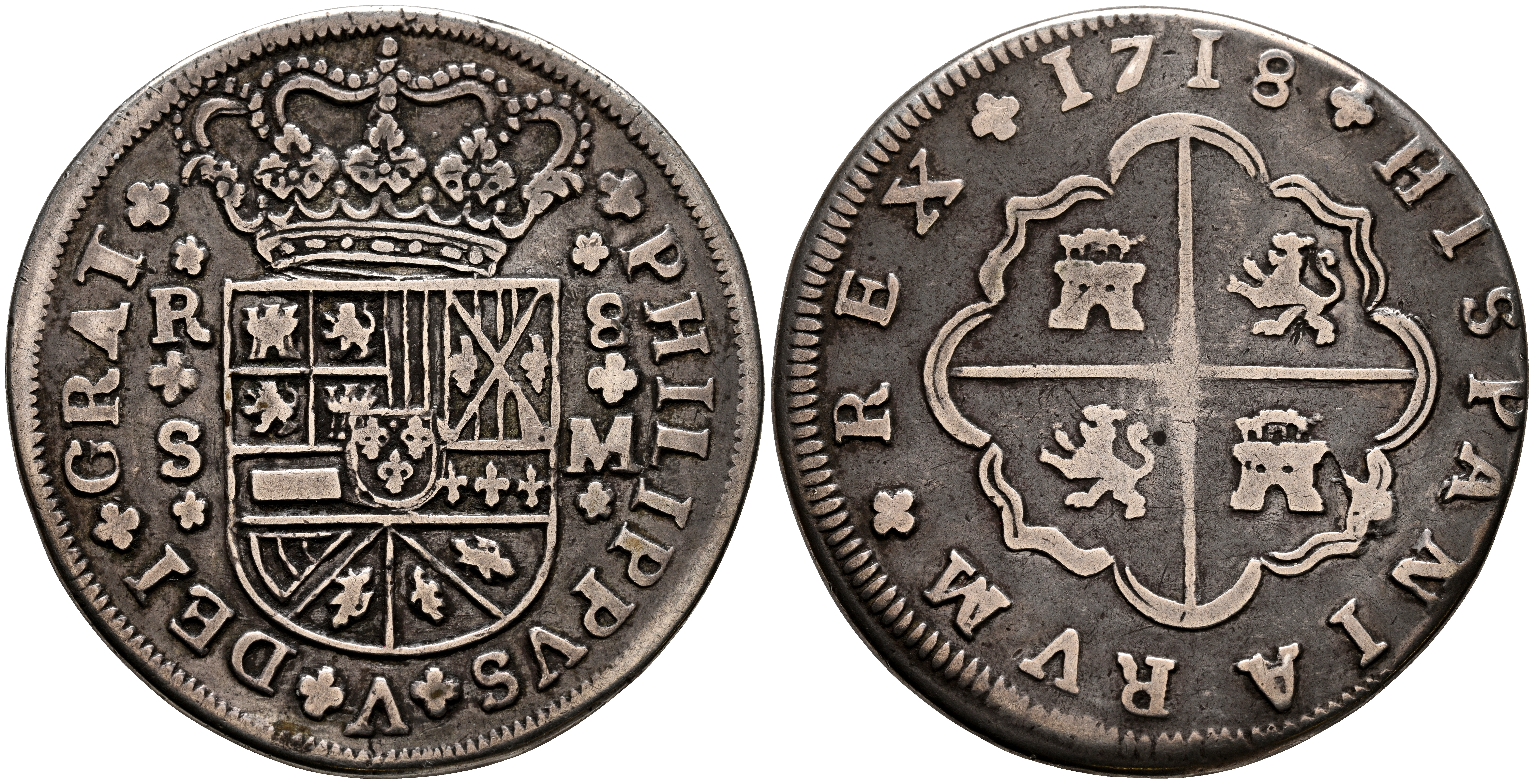 FELIPE V (1700-1746). 8 Reales. (Ar. 22,33g/40mm). 1718. Sevilla M. (Cal-2019-1617). MBC.