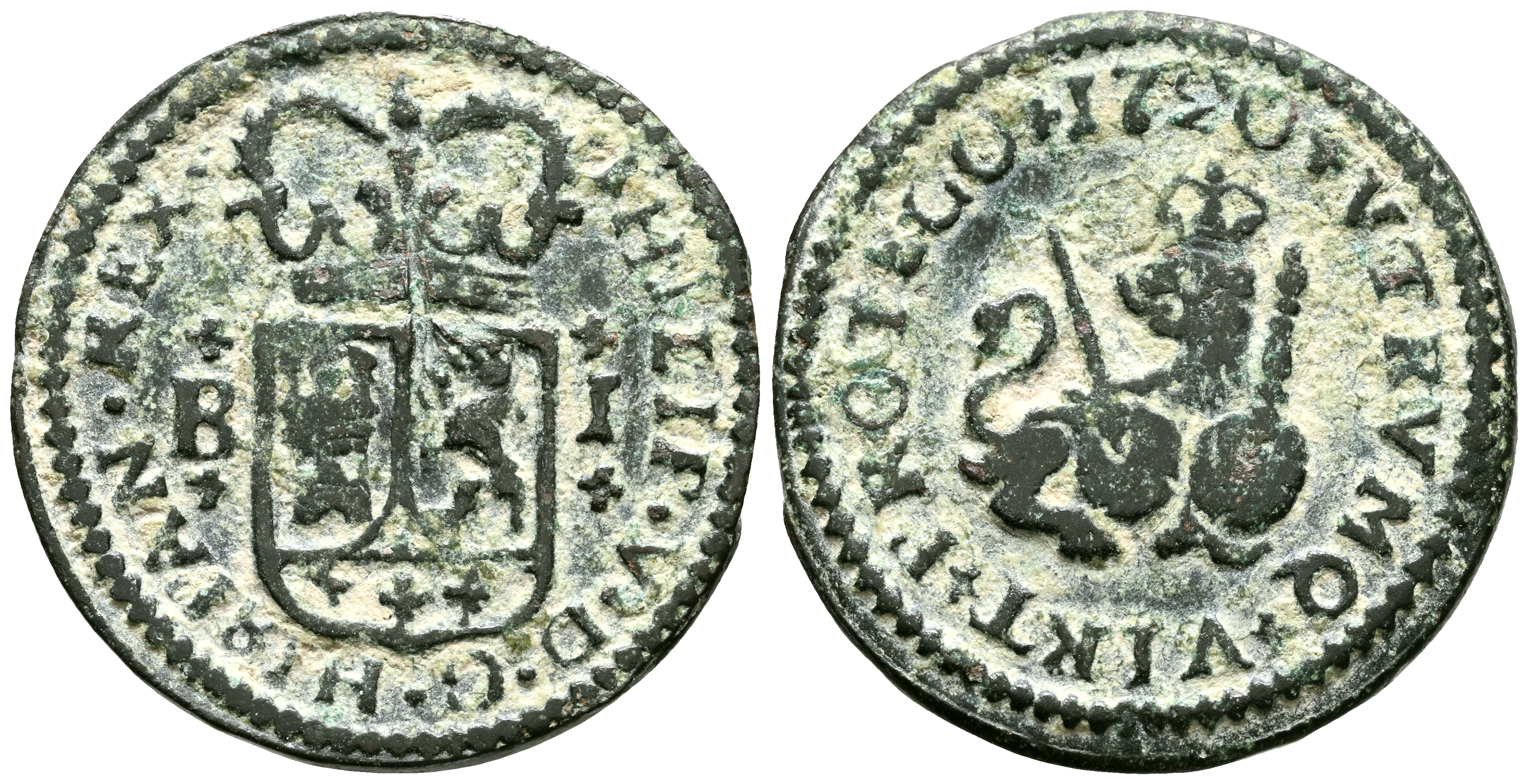 FELIPE V (1700-1746). 1 Maravedí. (Ae. 2,52g/19mm). 1720. Barcelona. (Cal-2019-45). MBC.