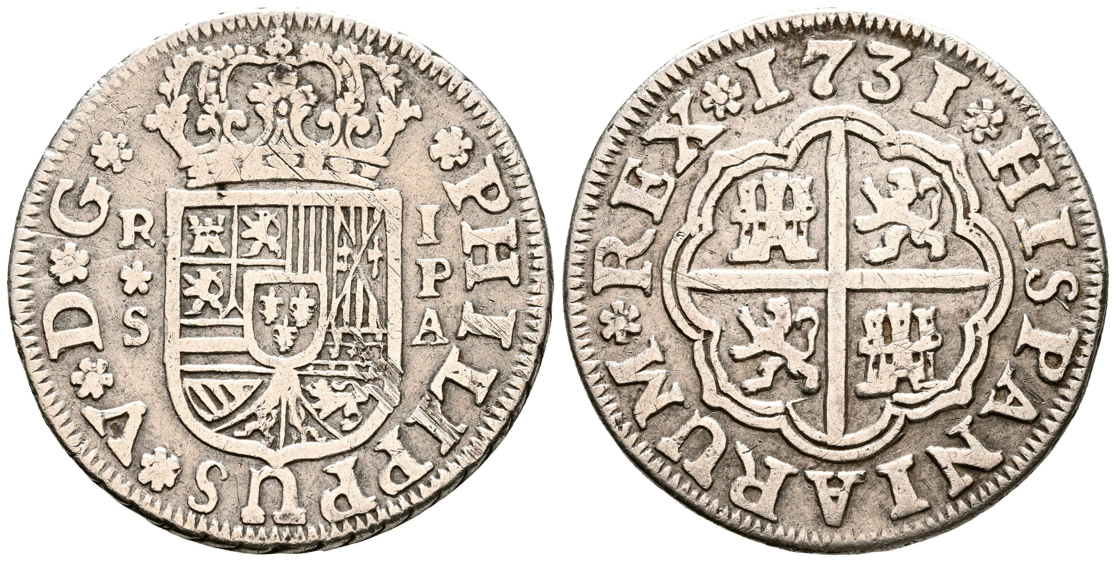 FELIPE V (1700-1746). 1 Real. (Ar. 2,68g/19mm). 1731. Sevilla PA. (Cal-2019-655). MBC.
