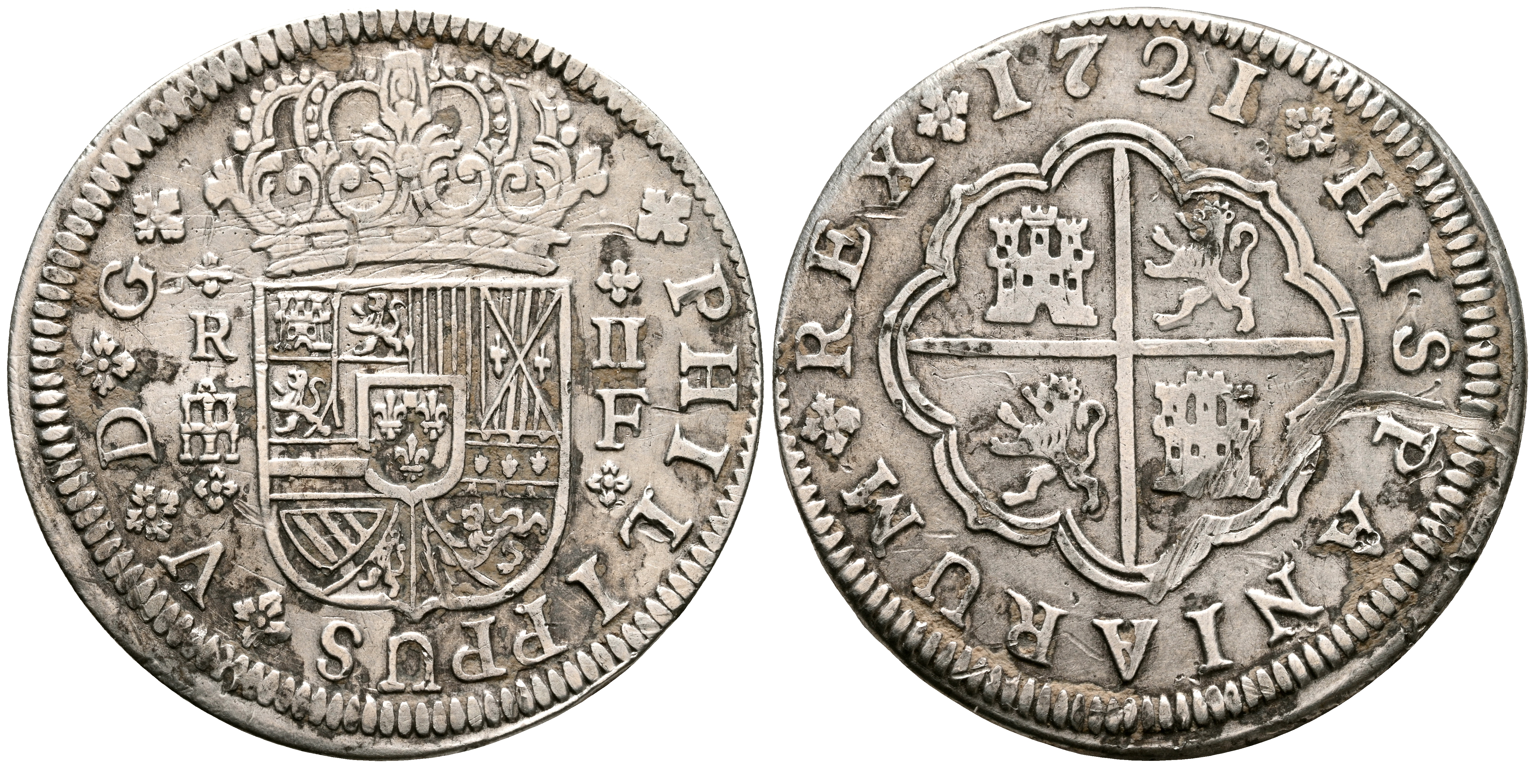 FELIPE V (1700-1746). 2 Reales. (Ar. 5,22g/27mm). 1721. Segovia F. (Cal-2019-954). MBC.