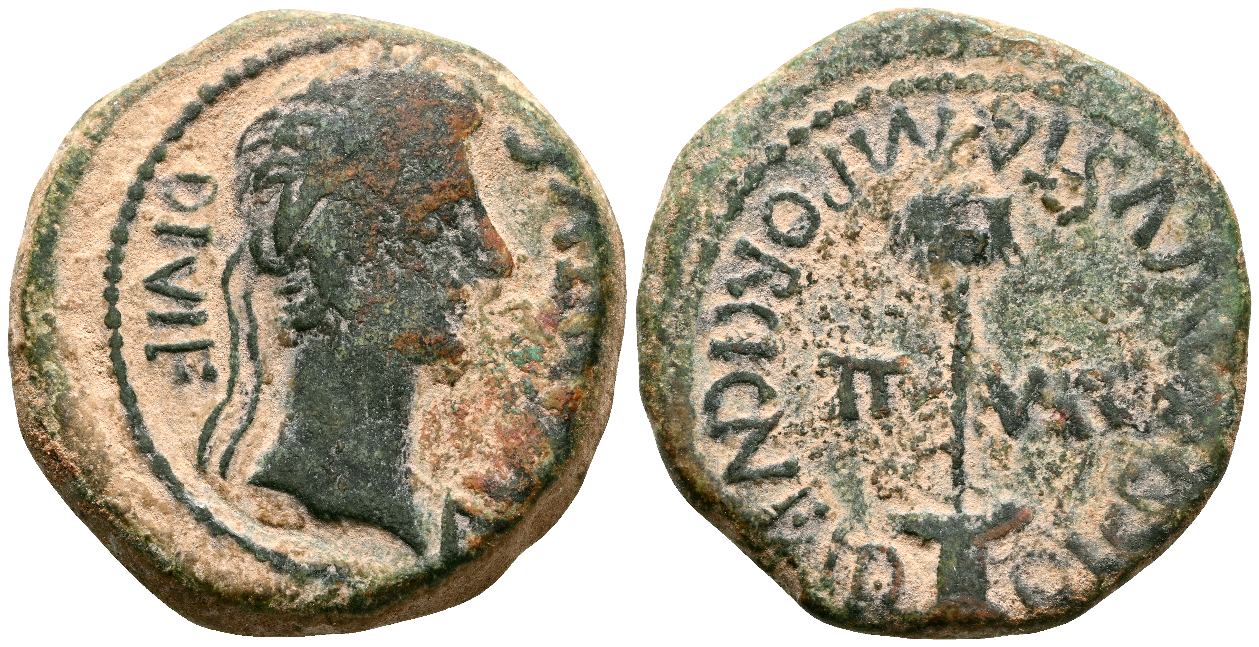 CAESARAUGUSTA (Zaragoza). Semis. (Ae. 5,76g/21mm). 27 a.C.-14 d.C. (FAB-334). Anv: Cabeza laureada de Augusto a derecha, alrededor leyenda AVGVSTVS DIVI F. Rev: Vexilo, a sus lados: II VIR, alrededor leyenda: CAESAR AVGVSTA M PORCI CN FAD. MBC-.