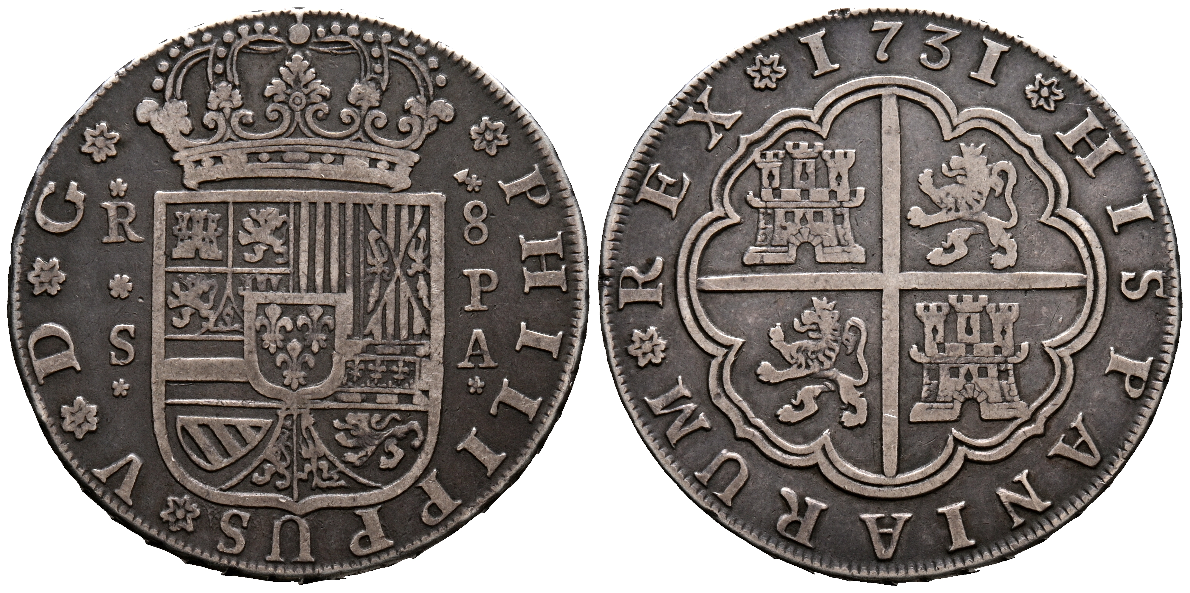 FELIPE V (1700-1746). 8 Reales. (Ar. 26,46g/40mm). 1731. Sevilla PA. (Cal-2019-1623). MBC. Bonita pátina.