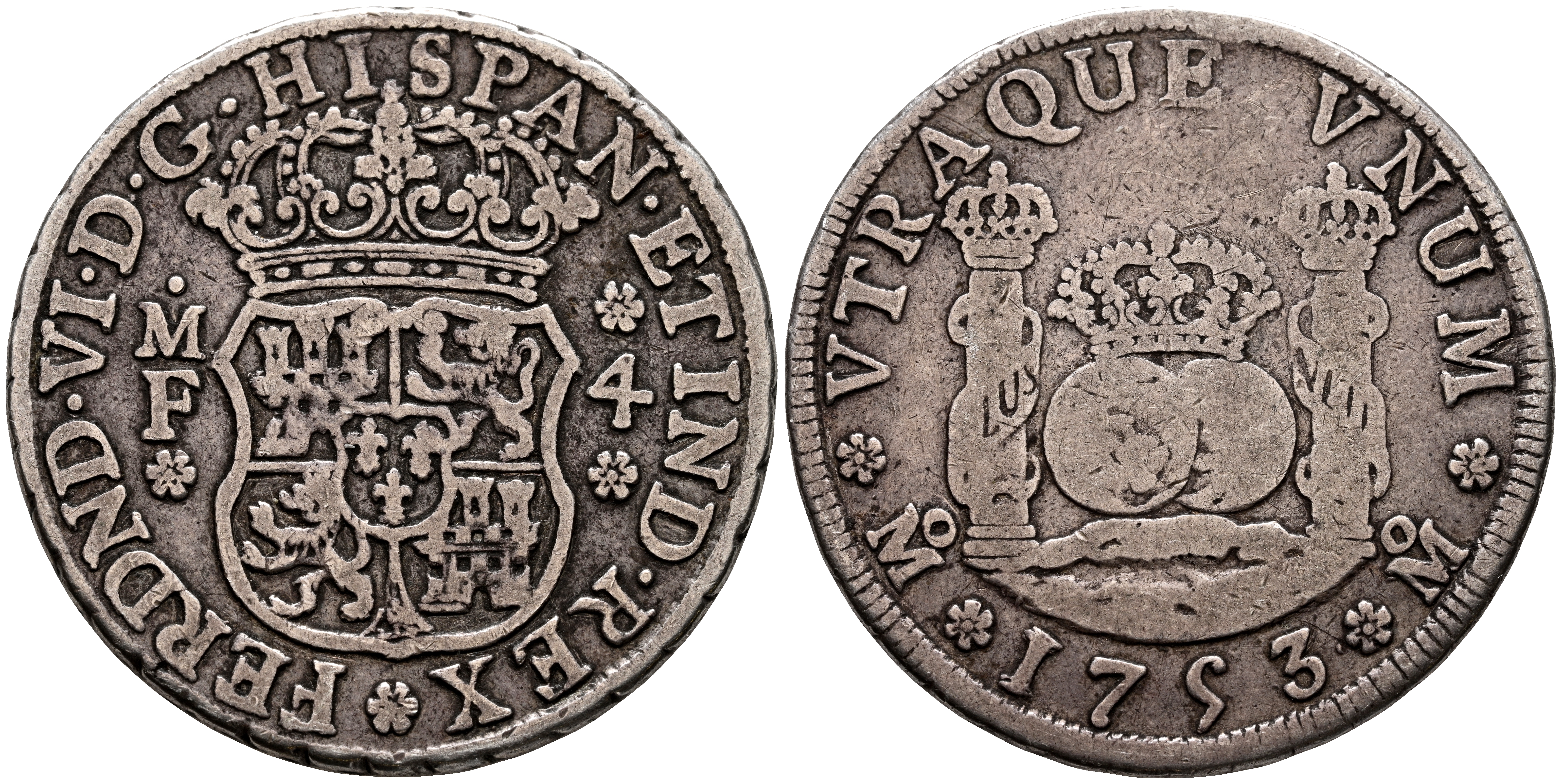 FERNANDO VI (1746-1759). 4 Reales. (Ar. 12,99g/33mm). 1753. México MF. (Cal-2019-387). BC+.